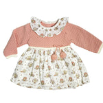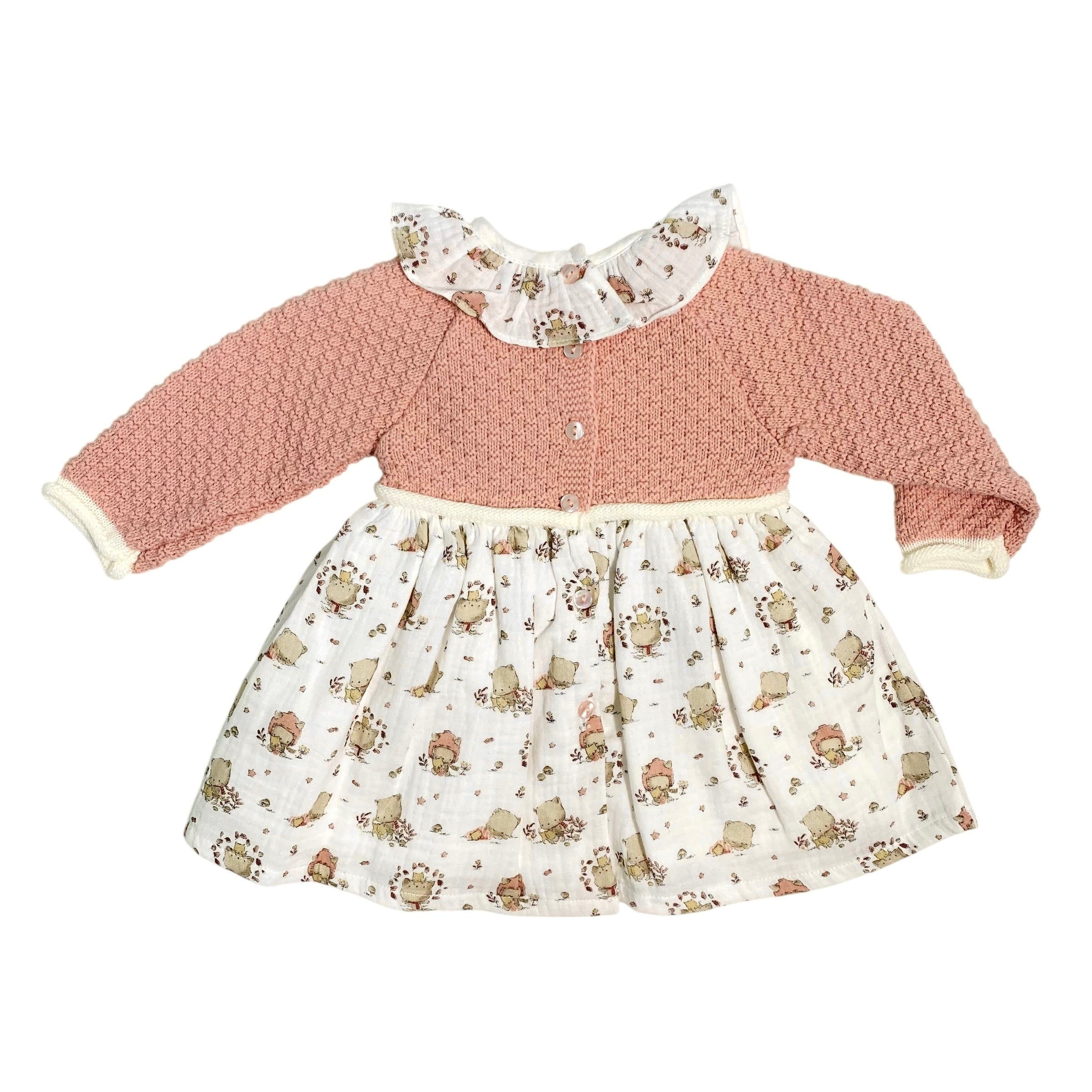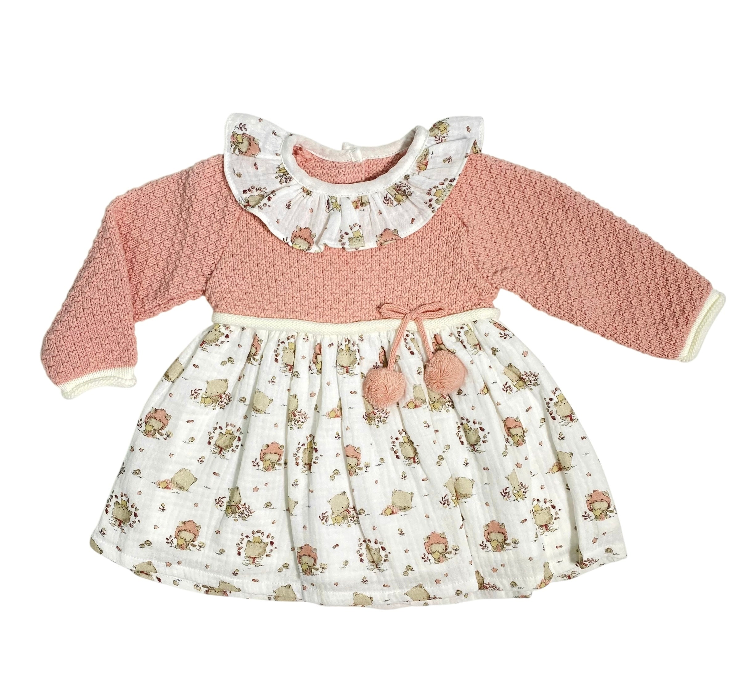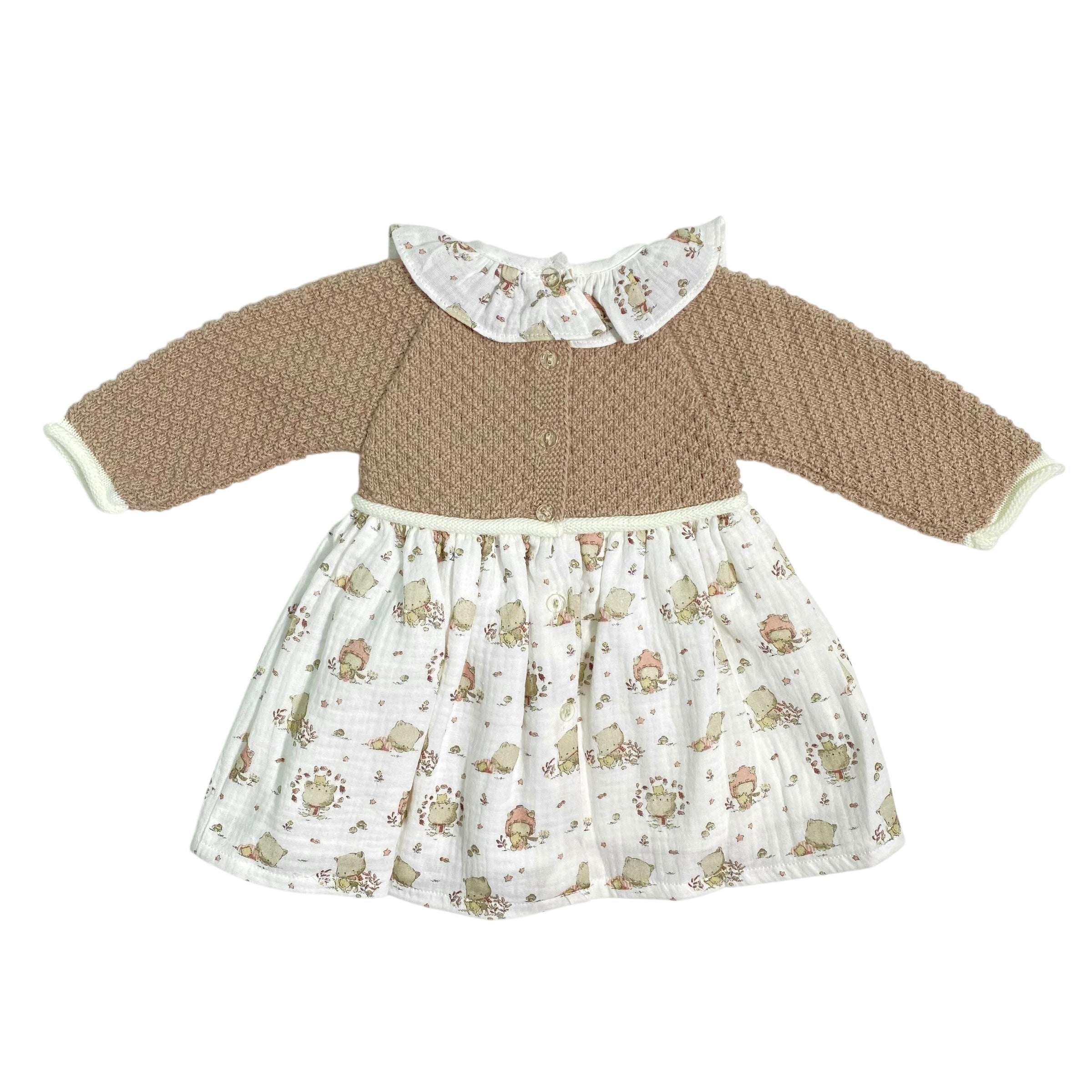 Questo abito combinato per neonata unisce un corpino in morbida maglia a una parte inferiore in tessuto stampato, garantendo comfort e stile. Il collo con dettaglio rouches aggiunge un tocco raffinato, perfetto per occasioni eleganti pur mantenendo una moda attuale. Progettato per offrire vestibilità e praticità, è ideale per chi cerca un capo distintivo e di qualità per le più piccole.