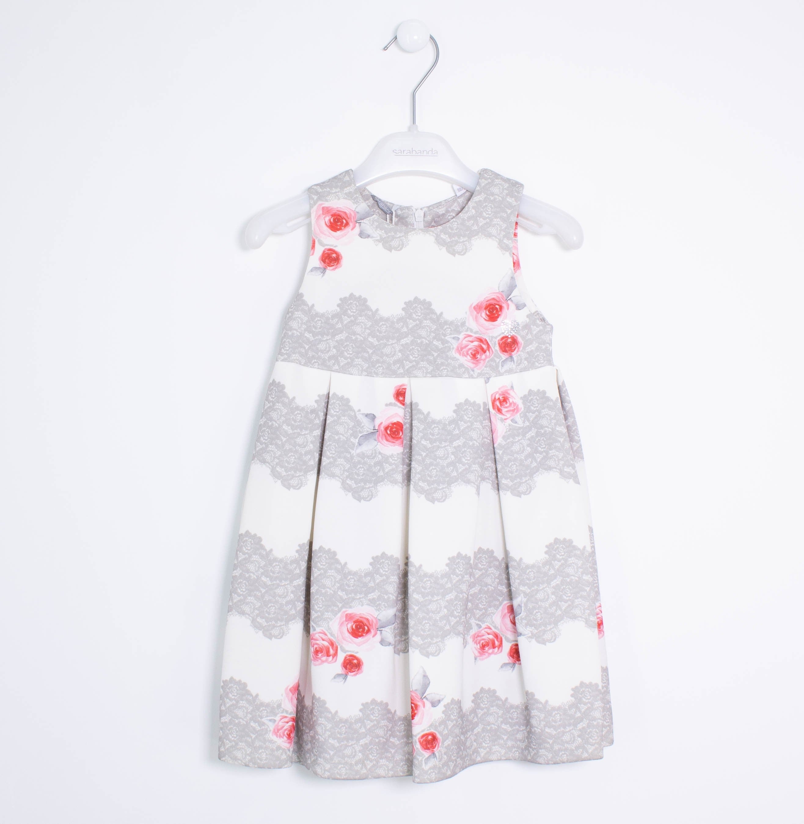 Elegant white sleeveless dress with floral print and invisible zip closure on the back