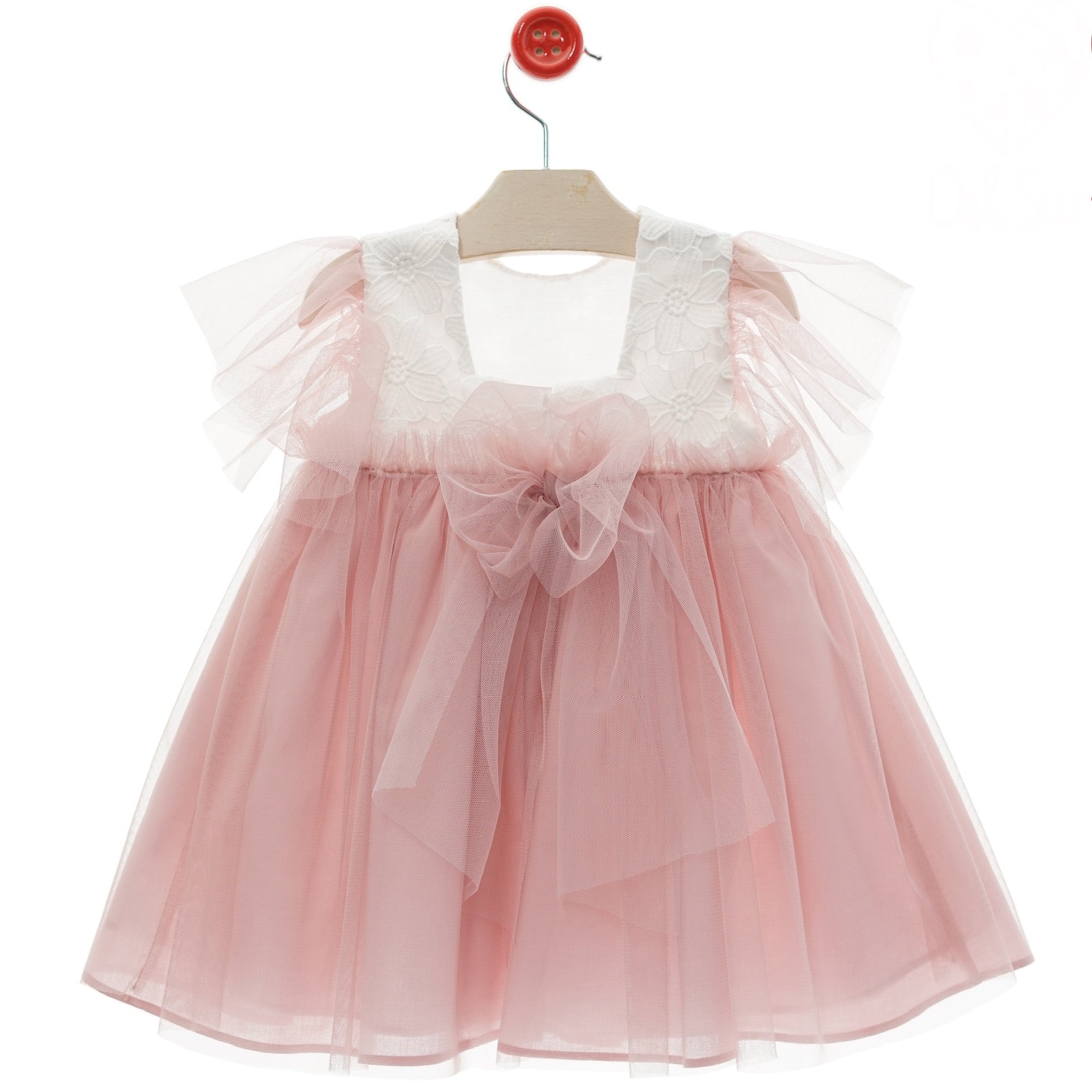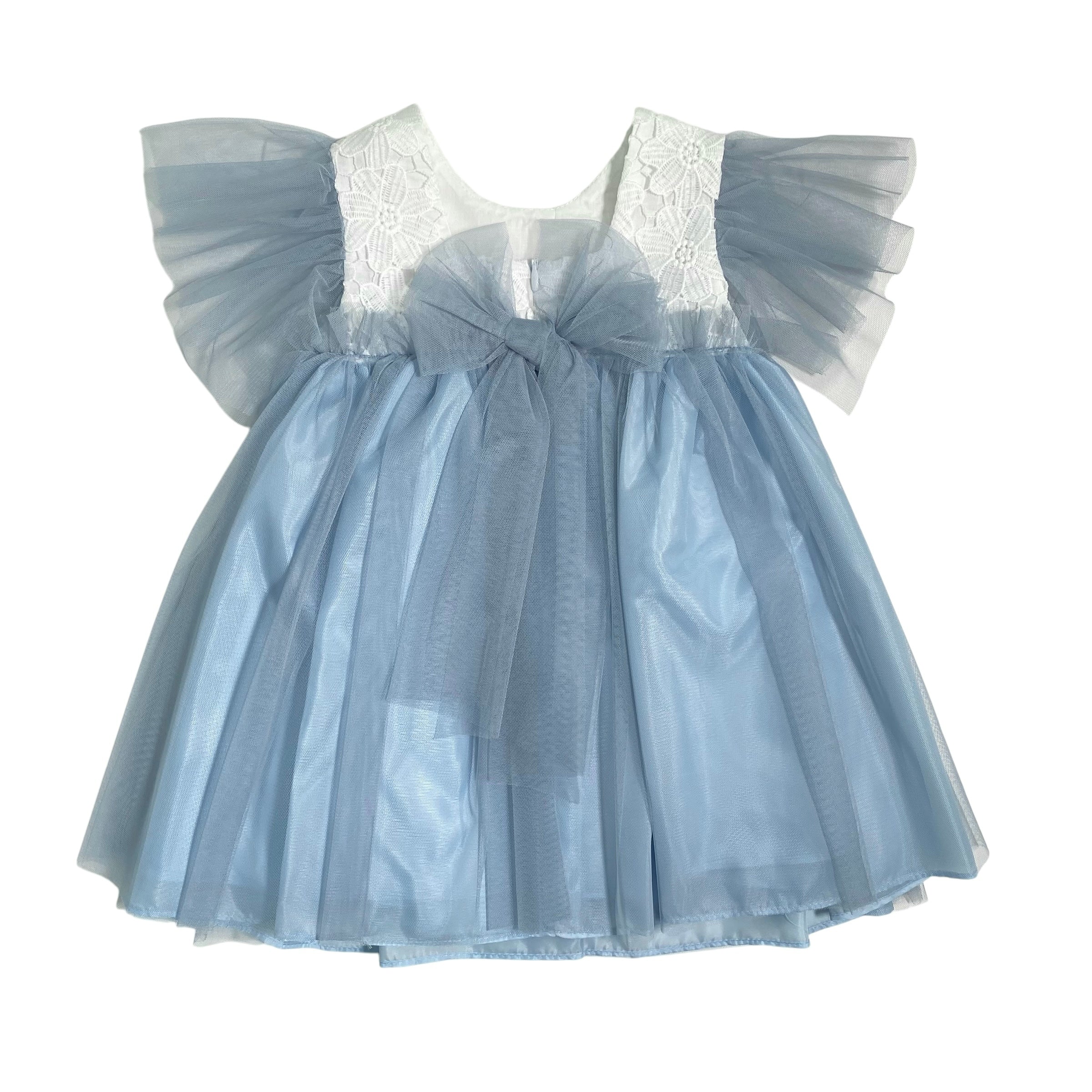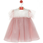 Questo abito elegante è perfetto per occasioni speciali. Realizzato con un corpetto in macramè e gonna in tulle, presenta una mezza manica in tulle e una chiusura con zip invisibile. Aggiunge un tocco di eleganza al guardaroba della tua bambina.