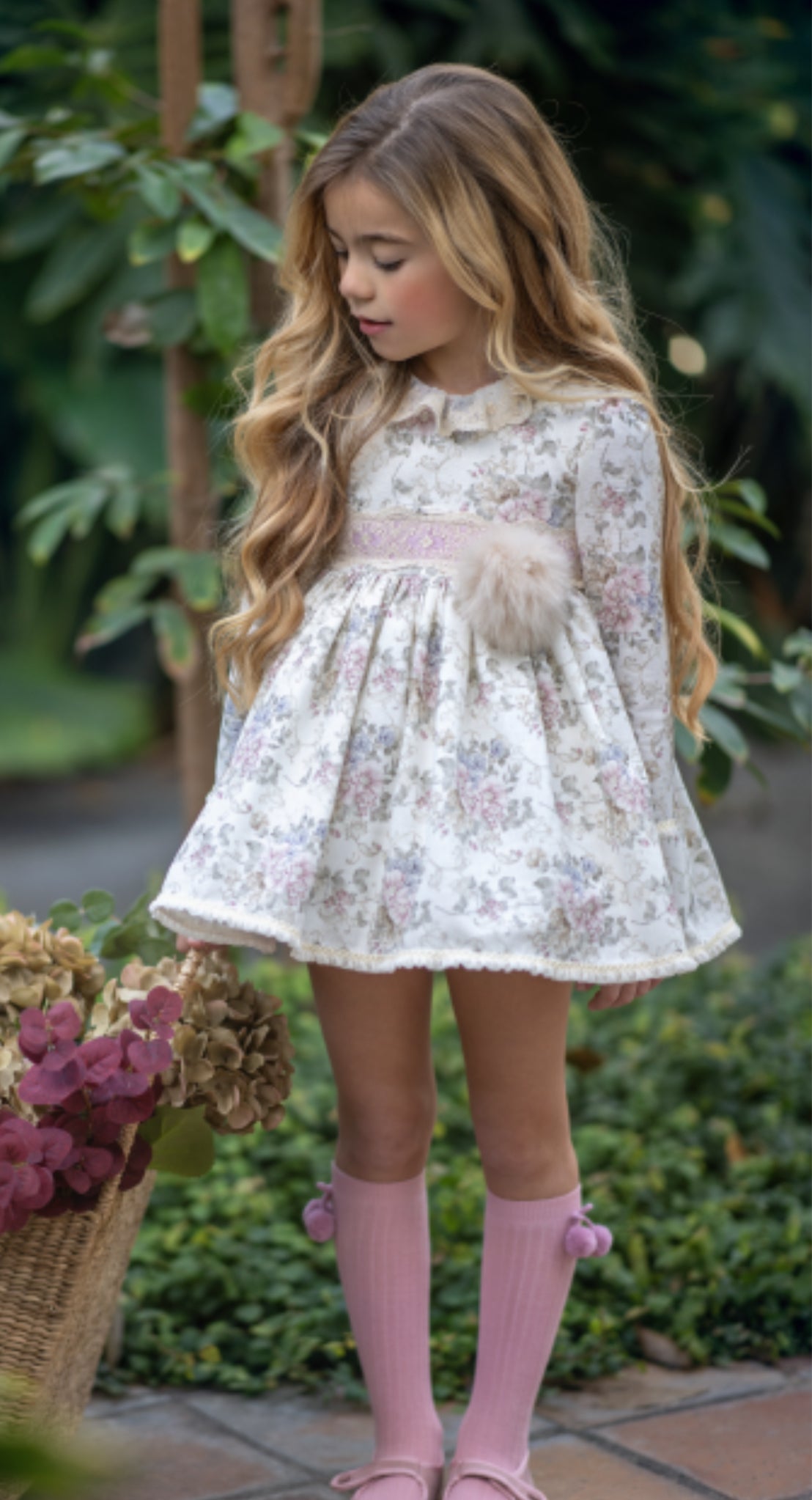 Abito Elegante Manica Lunga Fantasia Floreale Neonata MIMOSA DULCE ILLUSION