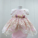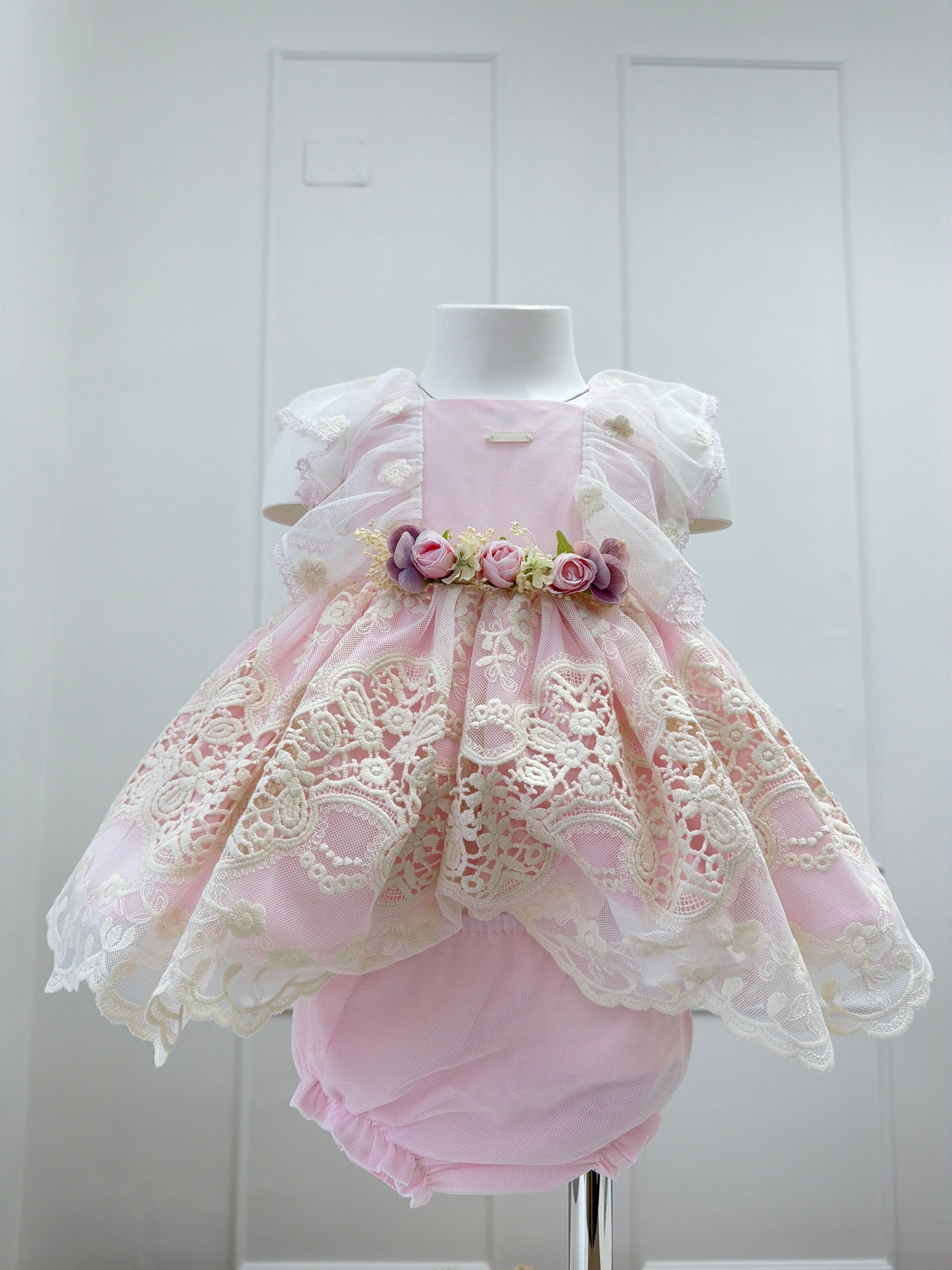 Questo delicato abito smanicato in pizzo è pensato per le occasioni speciali della vostra piccola. Il design principesco presenta una spilla di fiori removibile in vita, che aggiunge un tocco di eleganza sofisticata. La lavorazione in pizzo pregiato garantisce comfort e traspirabilità, perfetto per la pelle sensibile dei neonati. Un capo versatile che trasforma ogni momento in un'occasione indimenticabile.