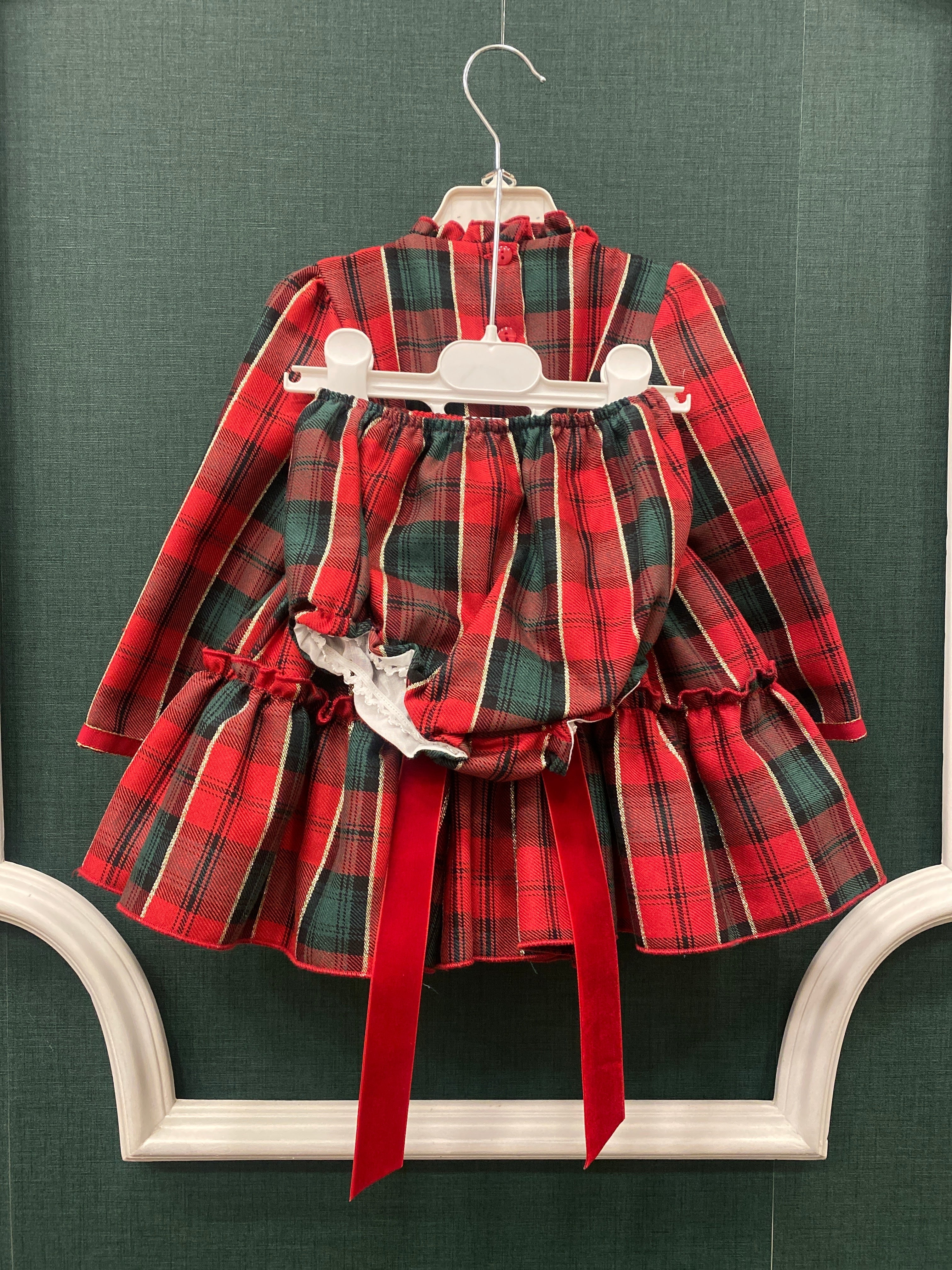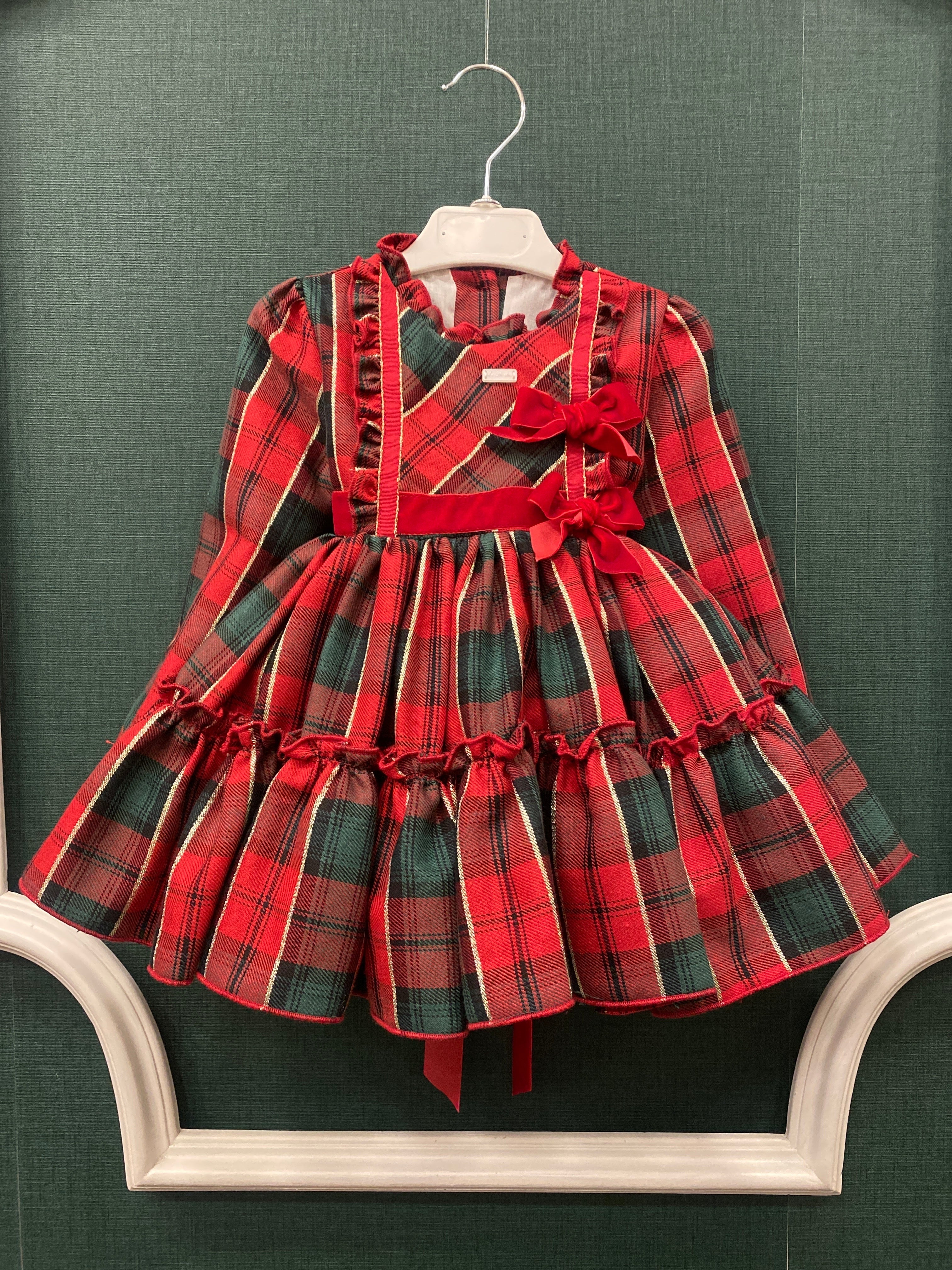 Elegantes, ausgestelltes Langarm-Schottenkleid für Baby-Mädchen LA AMAPOLA 0040