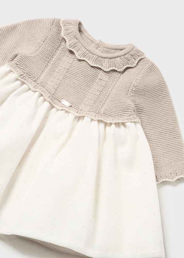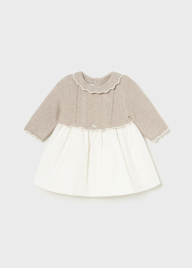 Questo elegante abito per neonata MAYORAL è perfetto per le occasioni speciali. La manica lunga e il corpetto in caldo cotone offrono comfort e stile, mentre la gonna in organza aggiunge un tocco di eleganza. Ideale per far risaltare la tua piccola principessa.