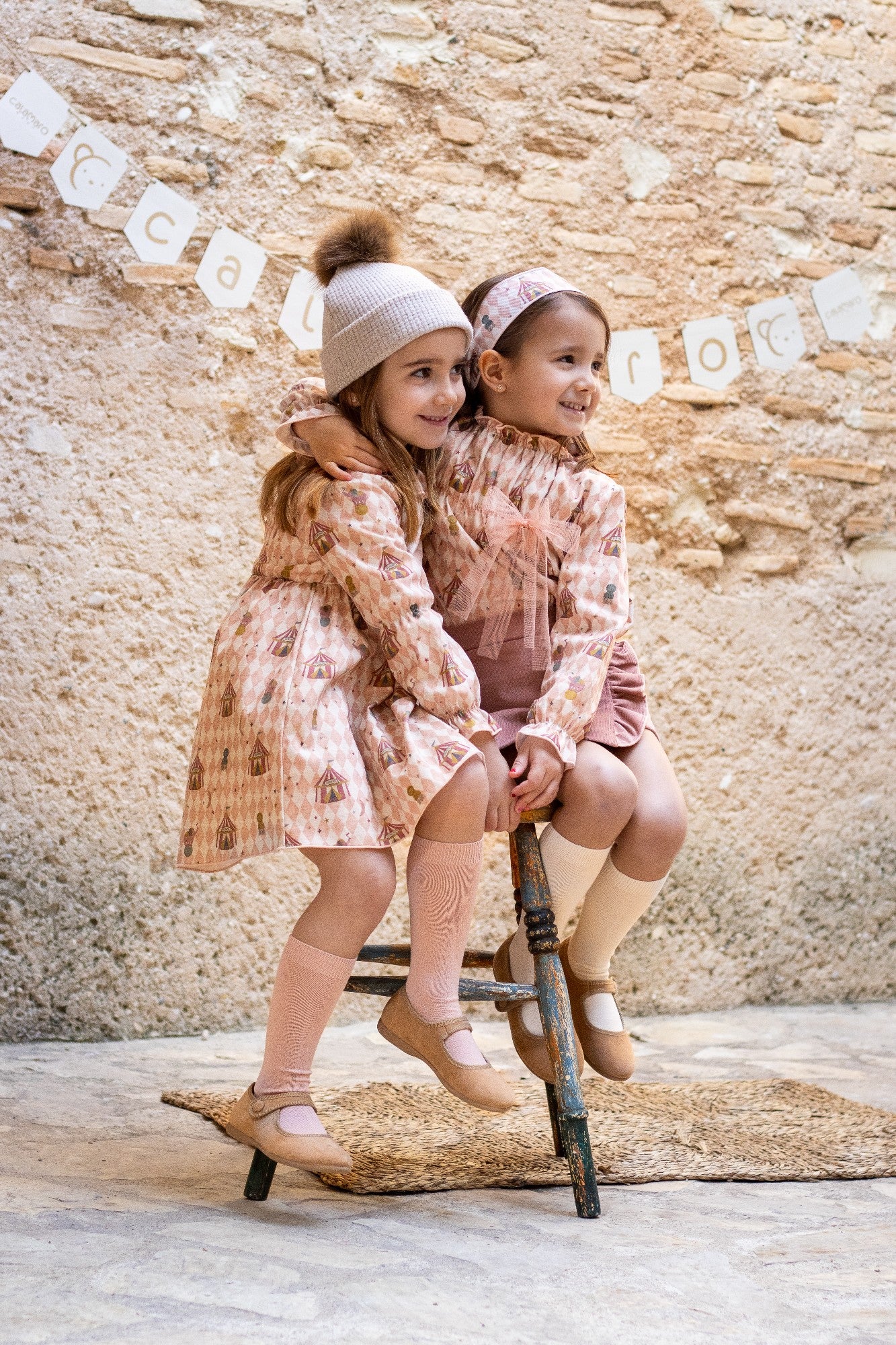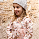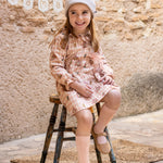 Questo abito a manica lunga per bambina, realizzato in caldo cotone stampato, unisce comfort e stile. Il collo con rouches aggiunge un tocco elegante, rendendolo perfetto sia per occasioni casual che per momenti più raffinati. Un capo alla moda che garantisce morbidezza e calore durante le giornate più fresche.