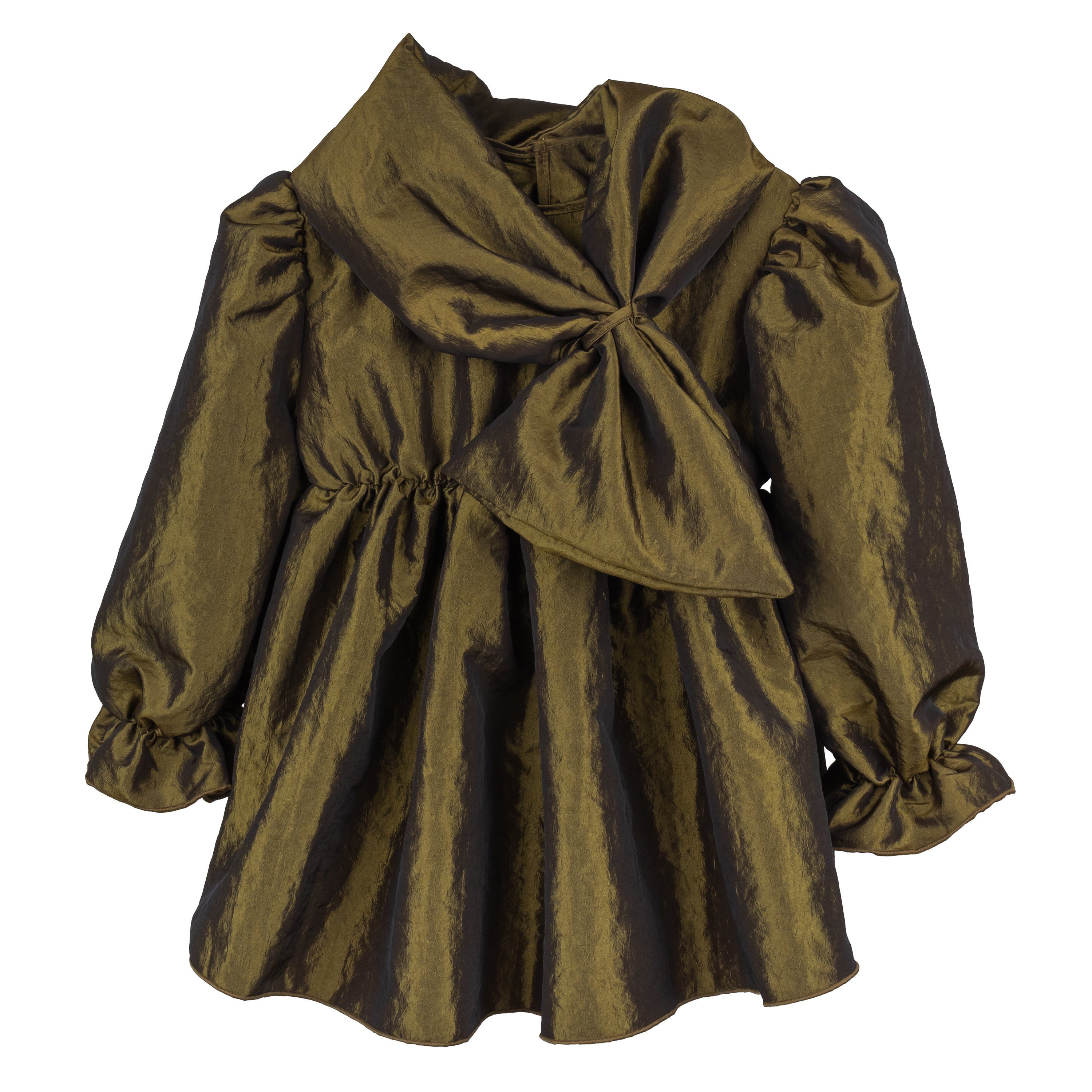 Questo abito elegante in taffettà a manica lunga è perfetto per ogni occasione speciale. La sua silhouette svasata è arricchita da un fiocco, rendendolo un capo unico e raffinato. Realizzato con materiali di alta qualità, sarà il completamento perfetto per un look impeccabile.