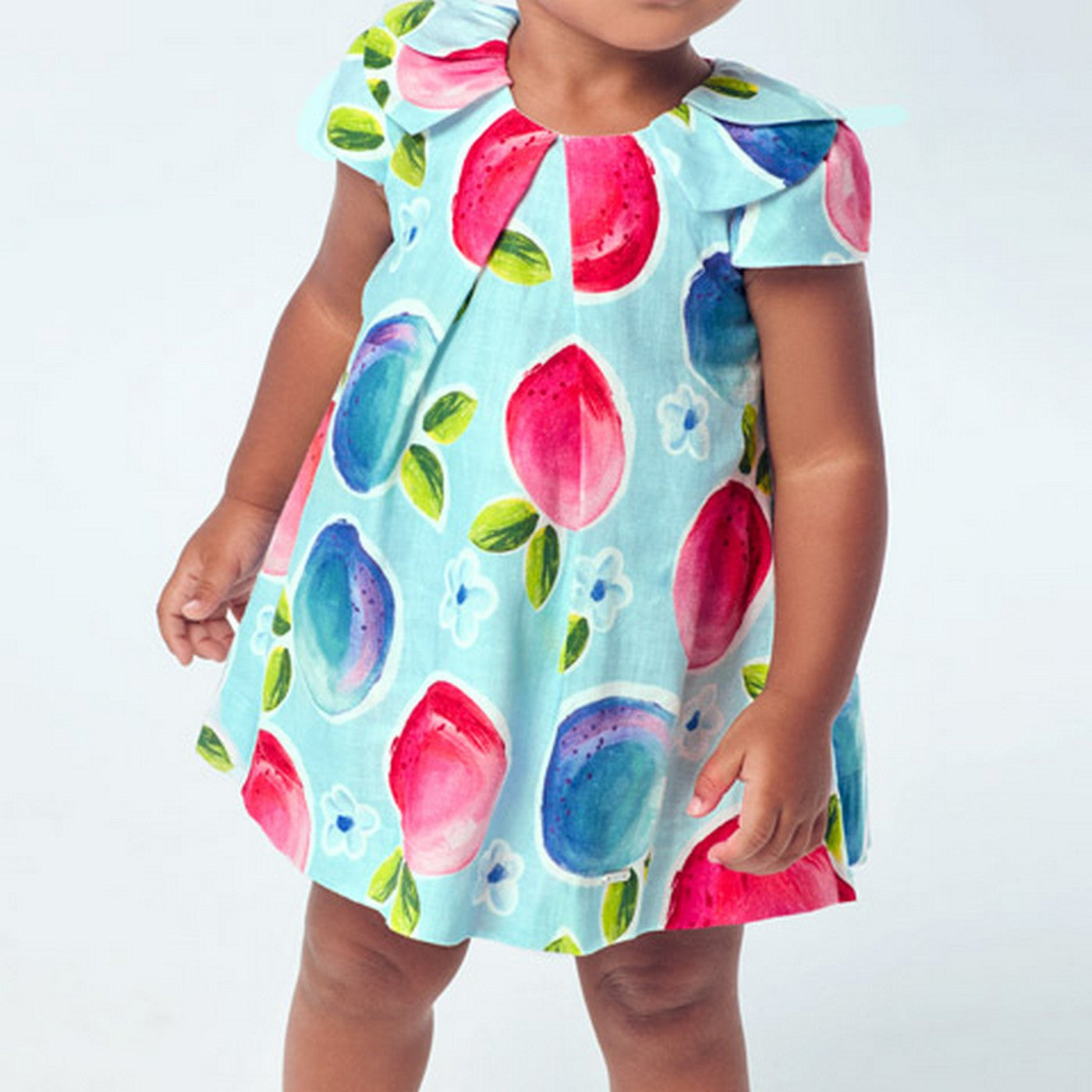 Dress with short-sleeved culottes in linen blend, with printed pattern.