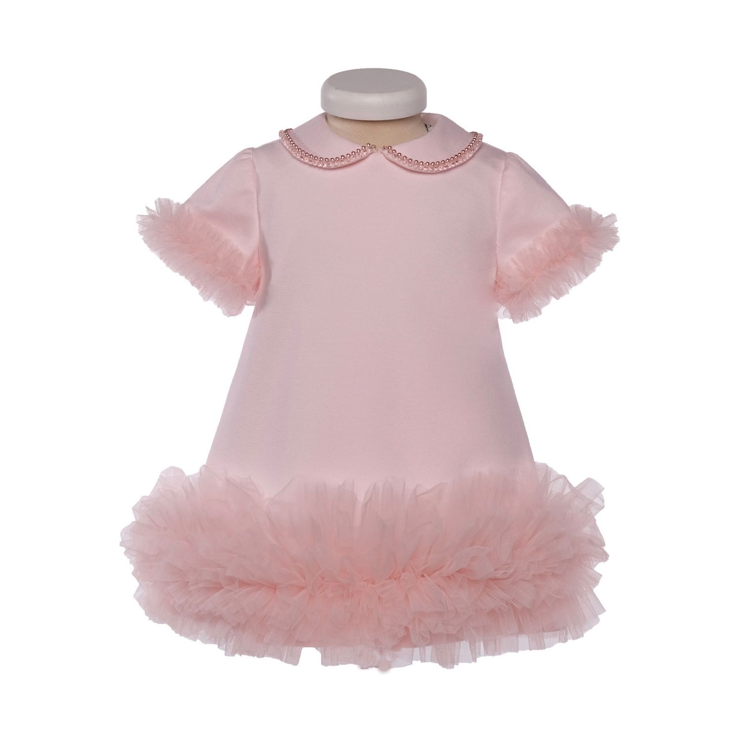 Runder Kragen mit Perlenverzierung.