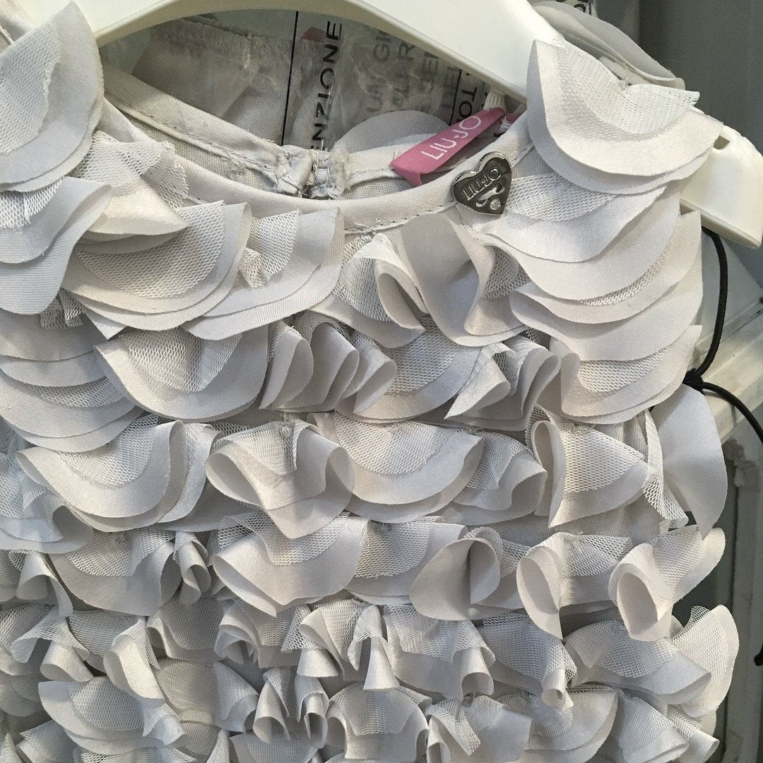 -Sleeveless stretch cotton dress covered with satin and tulle petals