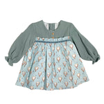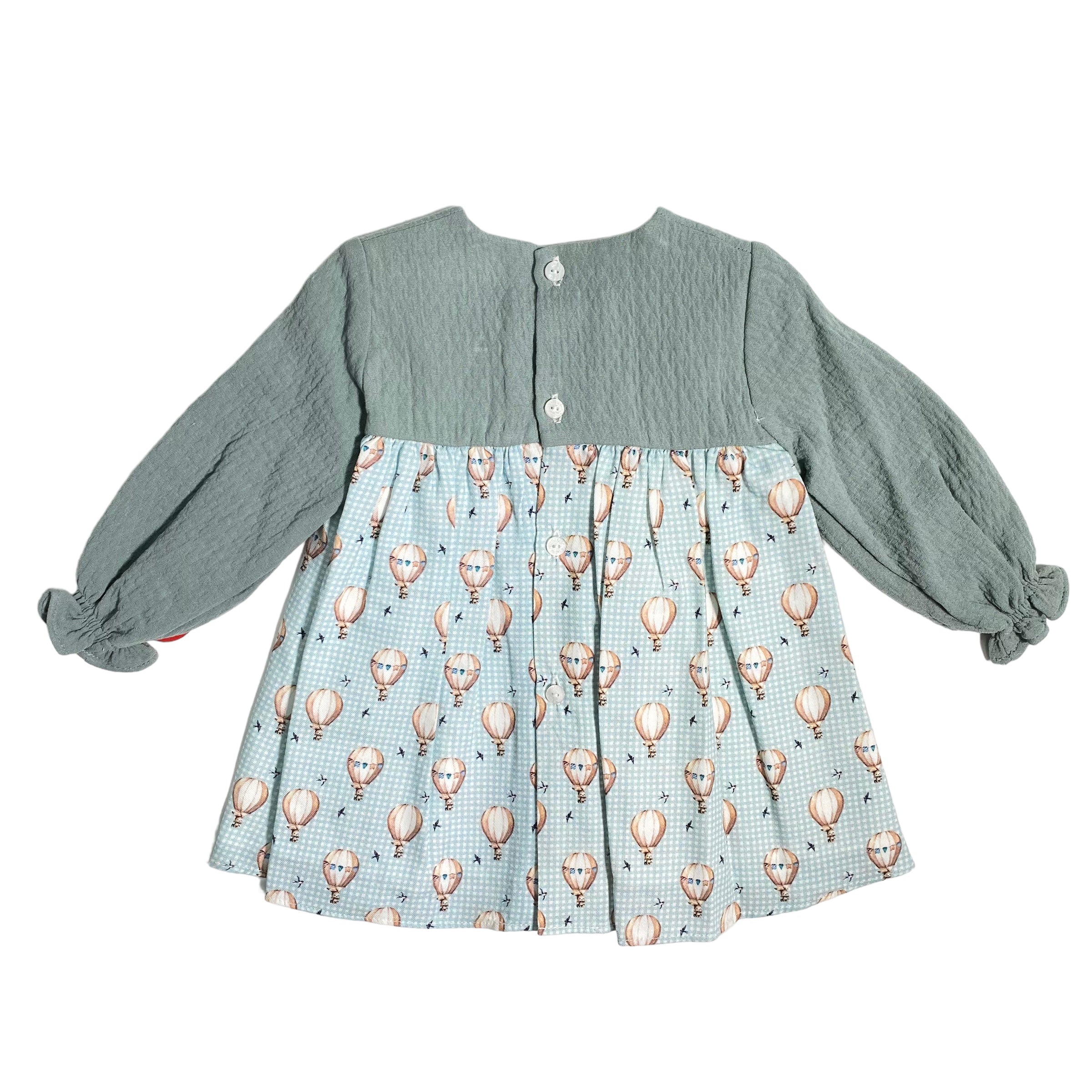 Langärmliges, ausgestelltes Kleid aus warmer Baumwolle mit Heißluftballonmuster.