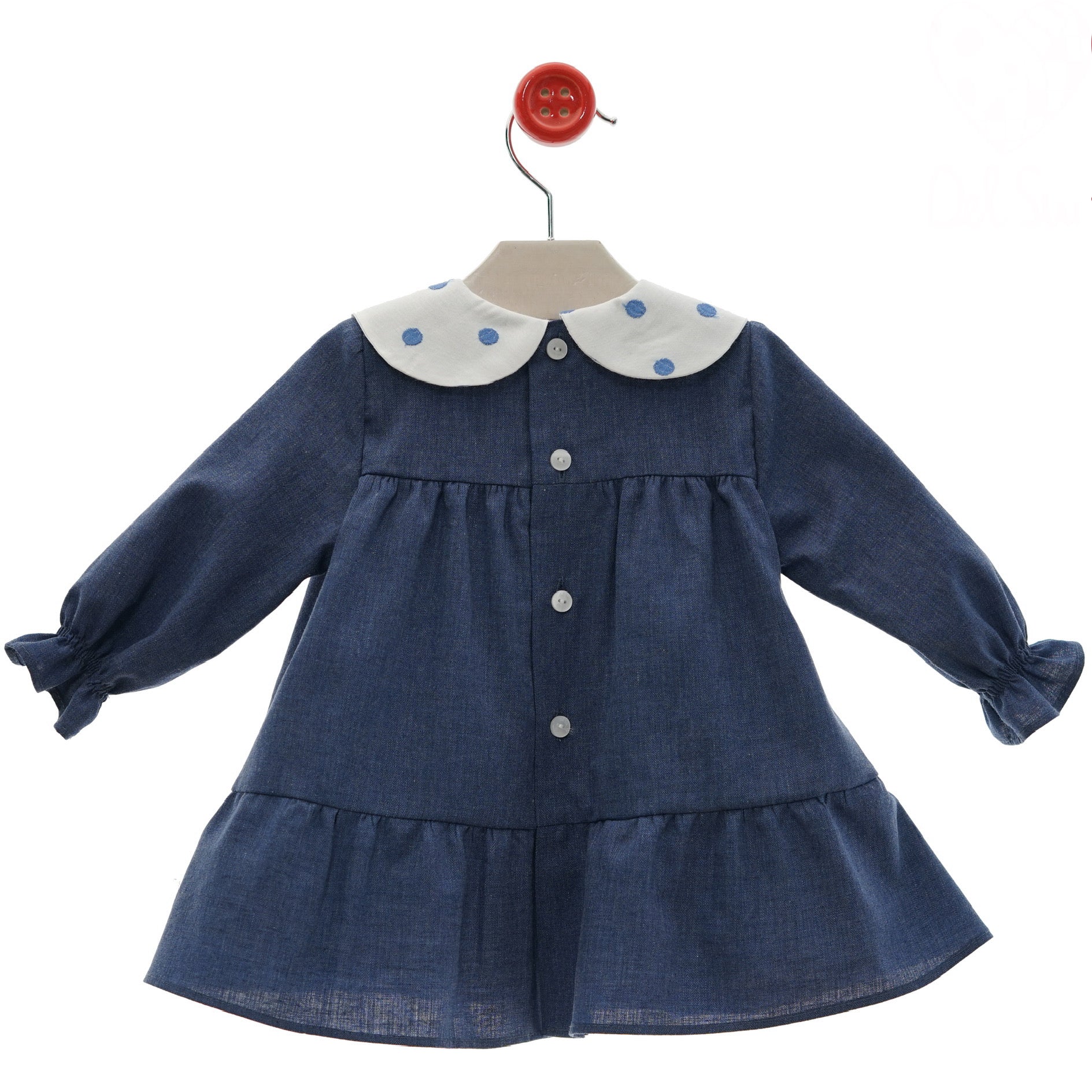 Questo abito in denim con maniche lunghe è perfetto per la tua neonata. Lo stile svasato e il collo ricamato a fiore lo rendono versatile e alla moda. Realizzato con materiali di qualità, è comodo e resistente per i movimenti dei più piccoli. Aggiungi un tocco di stile al guardaroba della tua bambina.