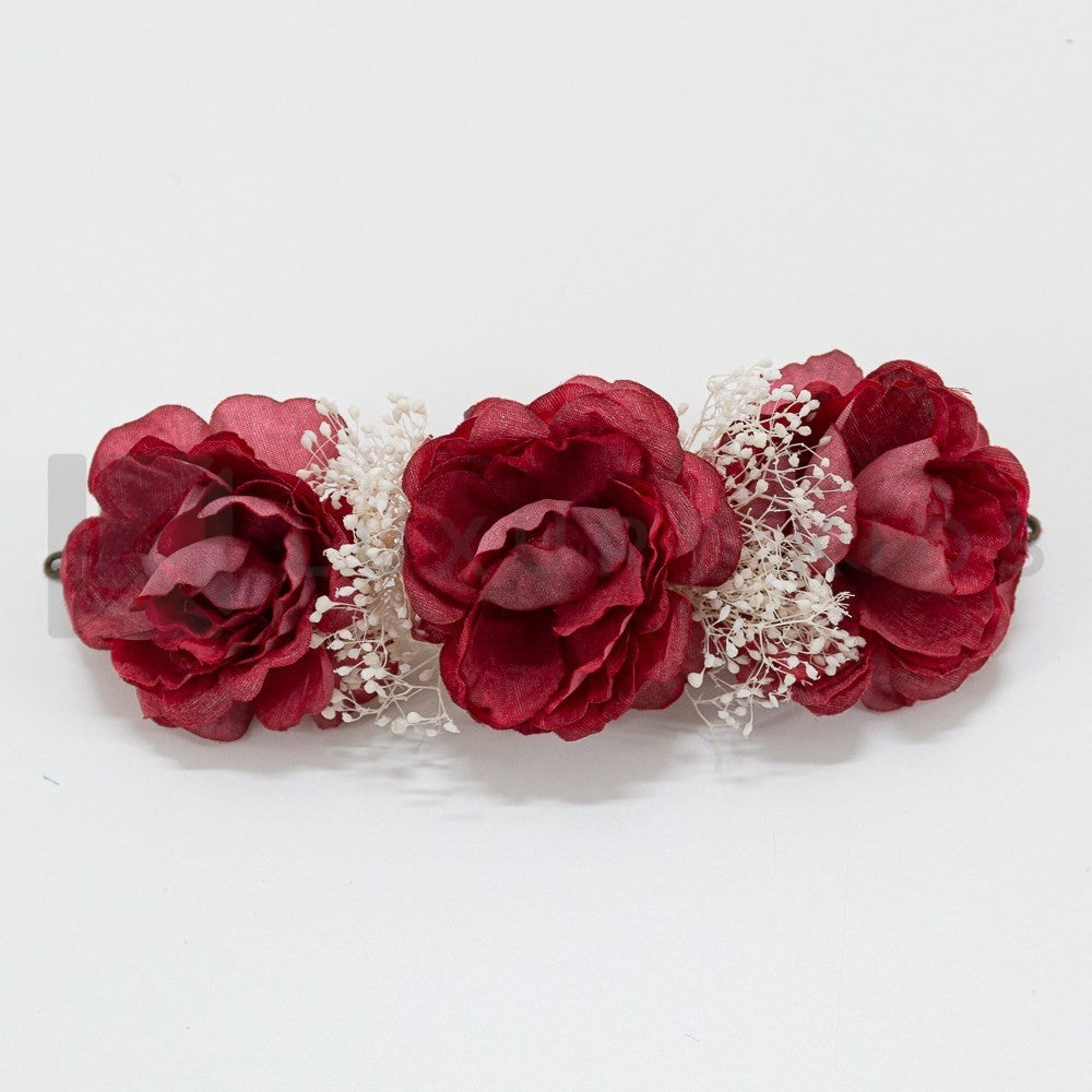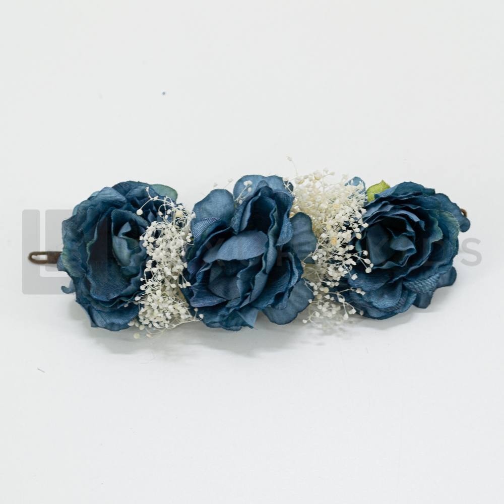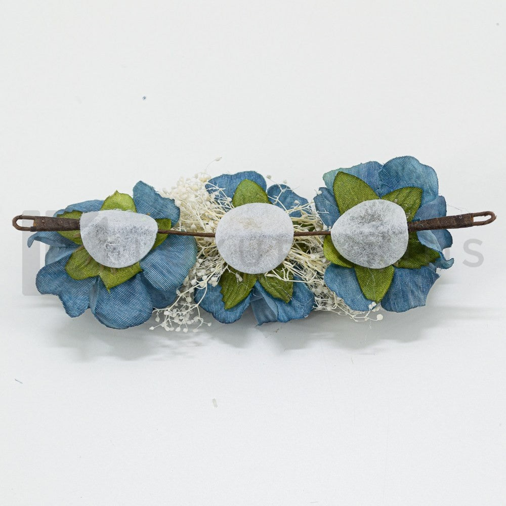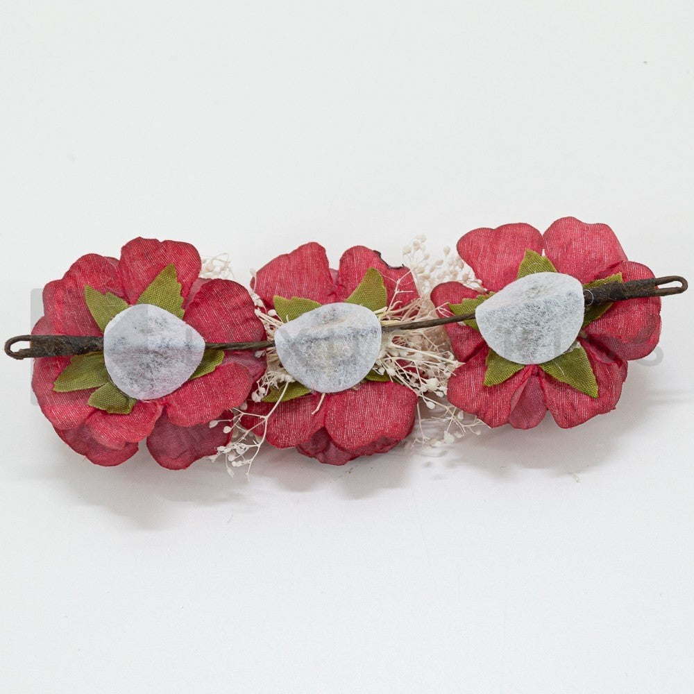 Hair application to be put on with hairpins, with flowers in colored fabric and mist