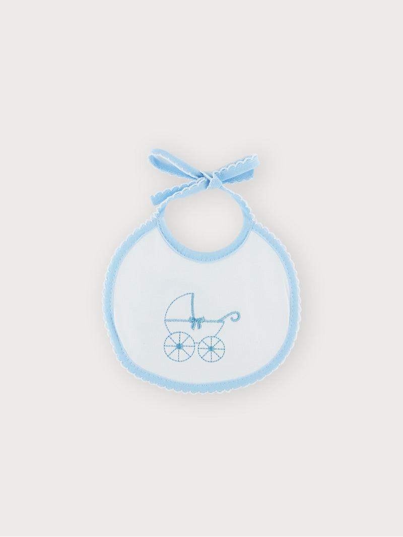 Baumwolllätzchen mit Kinderwagen-Stickerei.