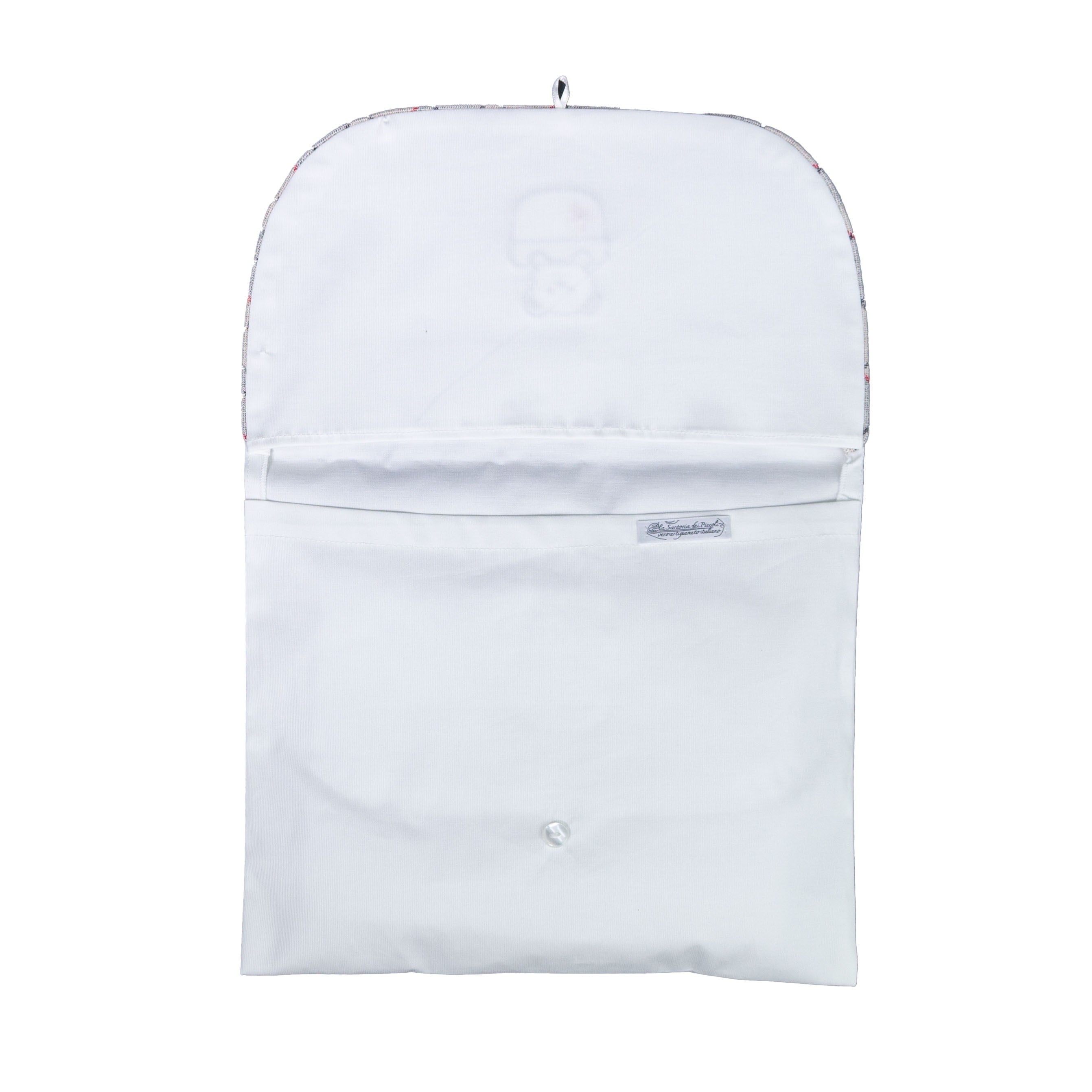 Birth envelope in cotton with white and gray bear. Opening with Button.