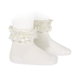 Baumwollsocken mit Spitze und Schleife am Bündchen