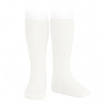 Lange, schlichte, glatt gestrickte Socken aus warmer Baumwolle.