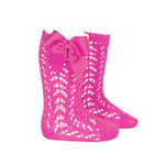 Lange perforierte Socken aus 100 % Baumwolle mit Schleife an der Seite.