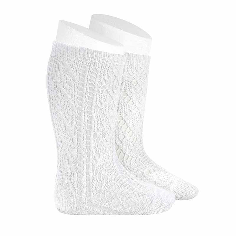 Lange Socken aus extrafeiner perforierter Perlbaumwolle.