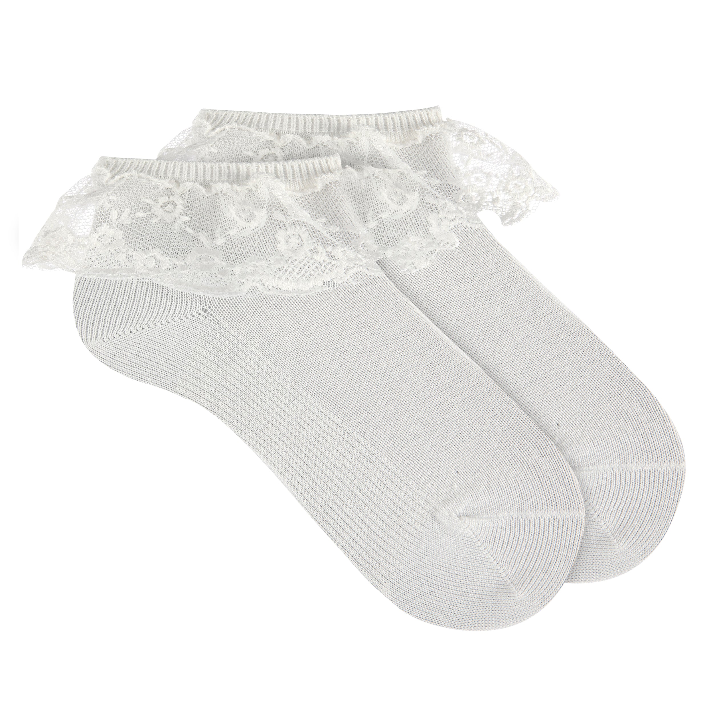 Calzini corti in filo di cotone con balza alla caviglia in pizzo, perfetti per bambini. Realizzati da CONDOR, garantiscono comfort e morbidezza per la delicata pelle dei piccoli. Perfetti per completare ogni outfit e garantire un look elegante.