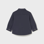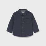 Overshirt manica lunga per bebé. Colletto modello camicia. Chiusura con bottoni nella parte anteriore. Tasca funzionale nella parte anteriore. Design liscio.