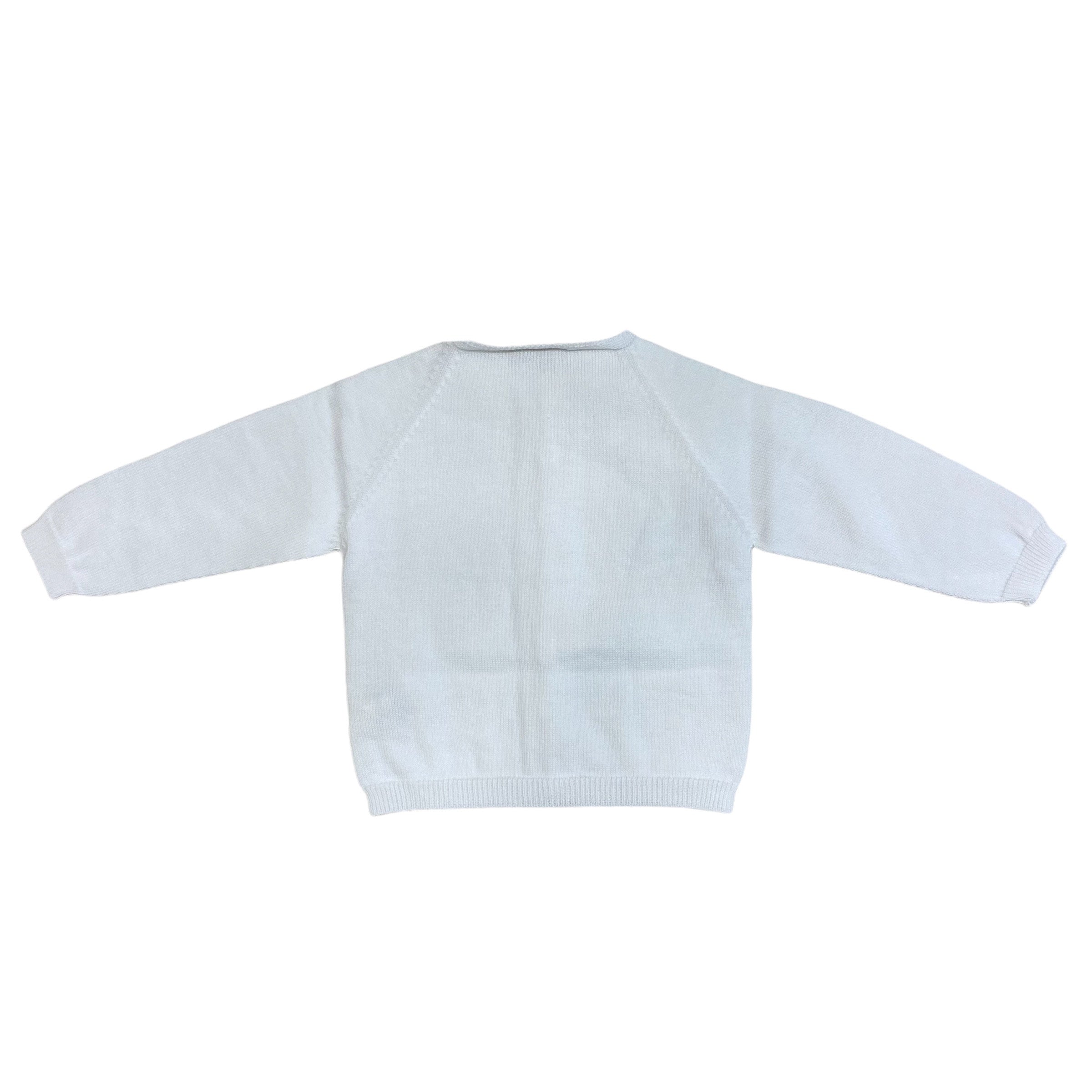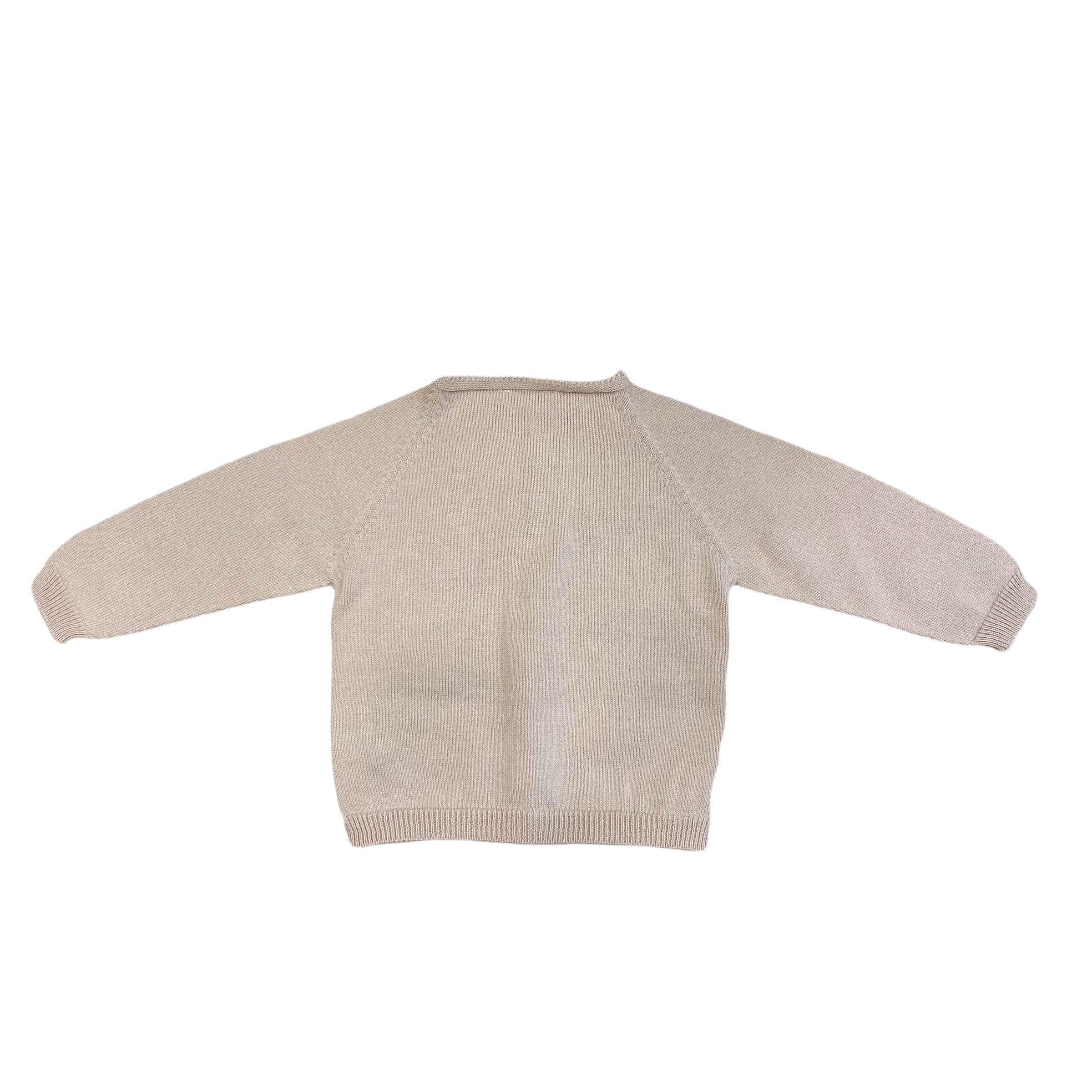 Long-sleeved cardigan in cotton thread finished on the front with braids and closure with mother-of-pearl buttons.