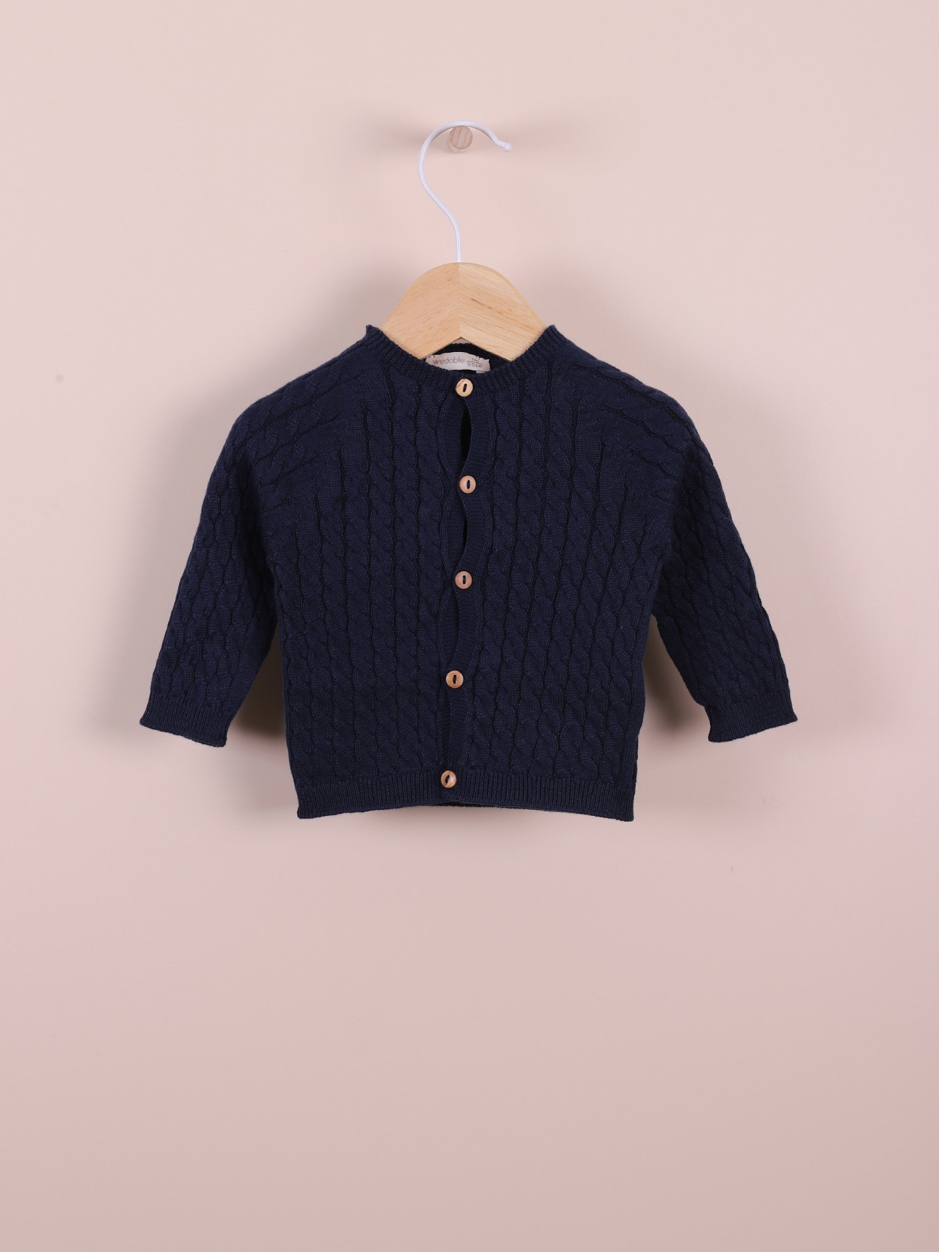 Questo cardigan in filo di cotone organico è caratterizzato dalla lavorazione con trame di trecce che gli conferisce una texture unica e di alta qualità. Con la sua chiusura sul davanti con bottoni in legno, questo capo versatile è ideale per look eleganti o casual. Aggiungi un tocco di stile e comfort al tuo guardaroba con il cardigan WEDOBLE.