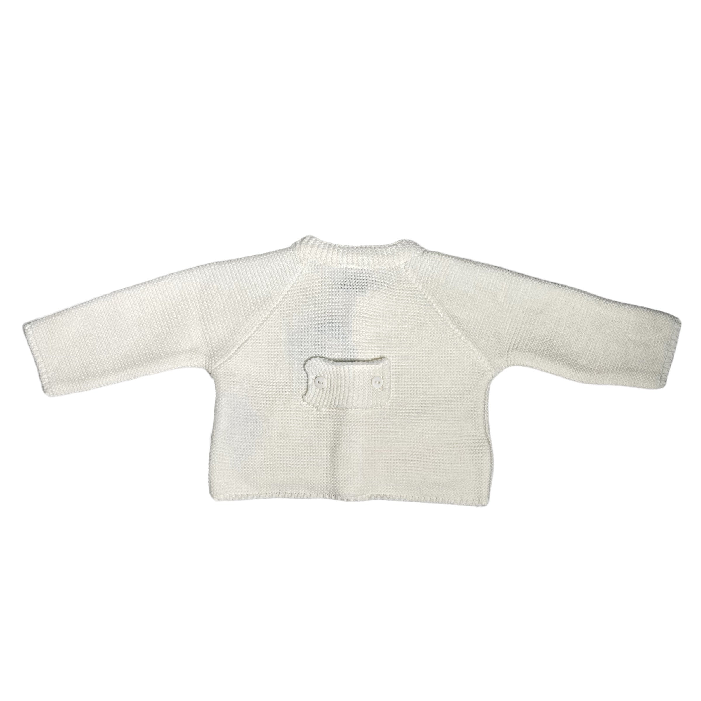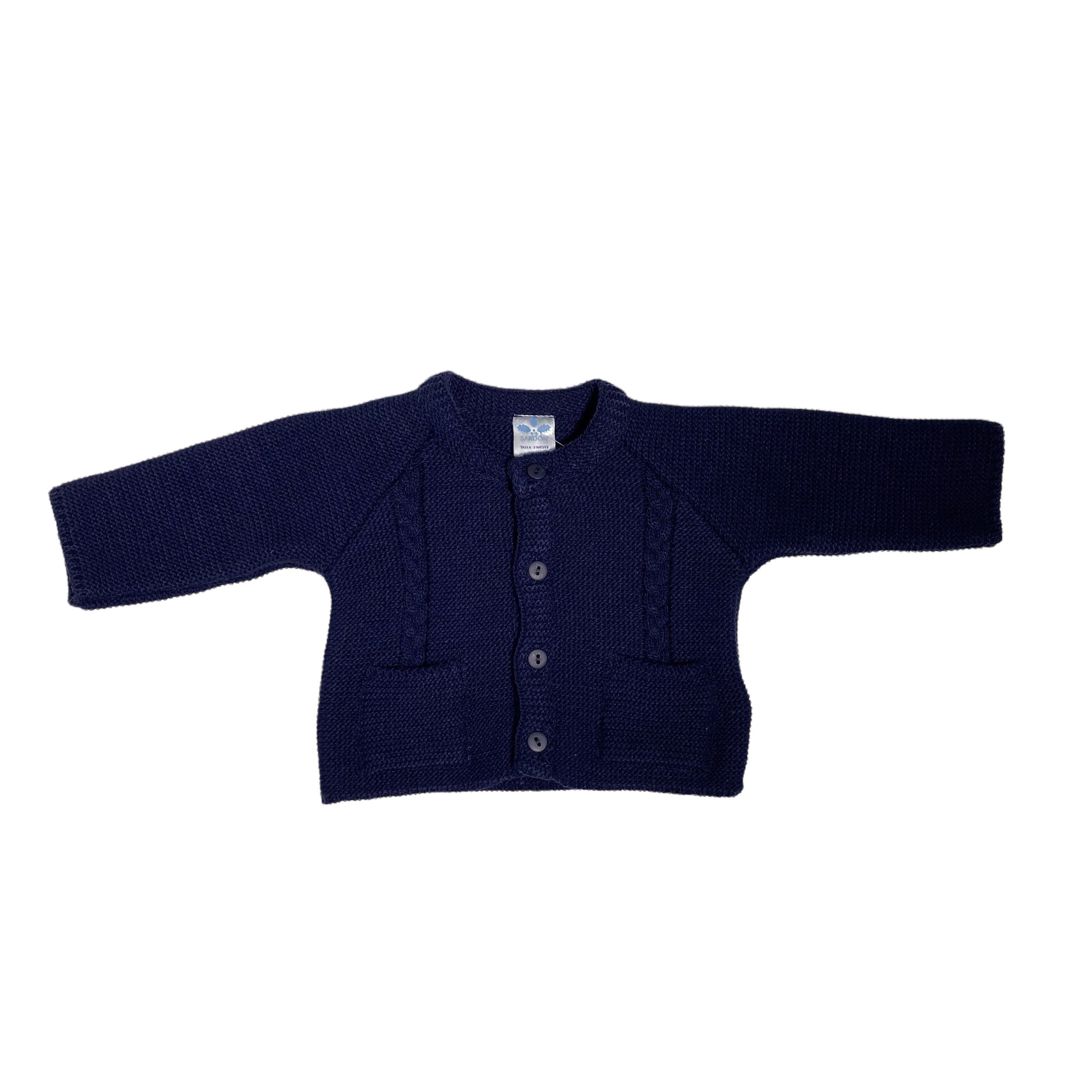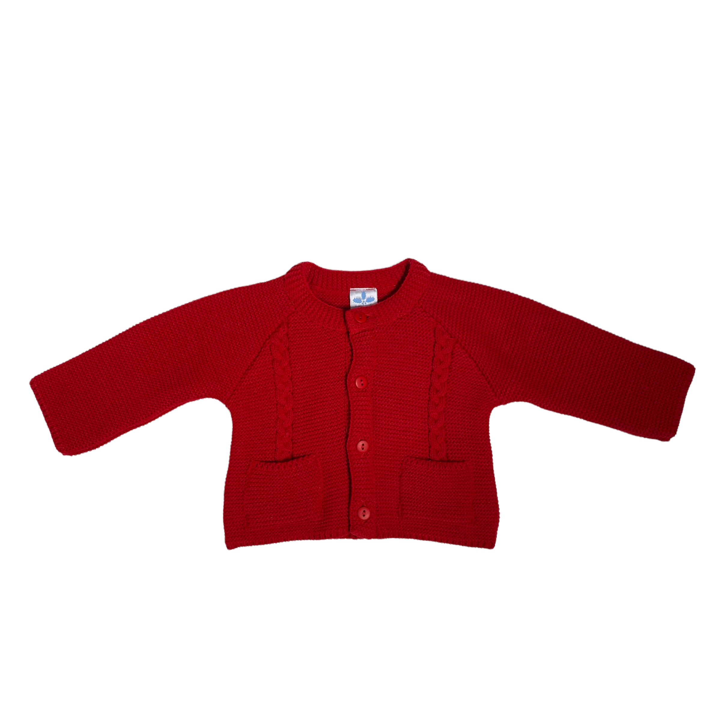 Cardigan in hypoallergenic acrylic fabric, solid color, with braid weave on the front and button closure.