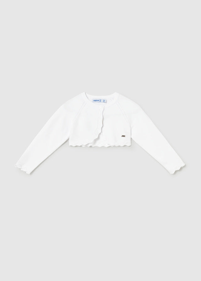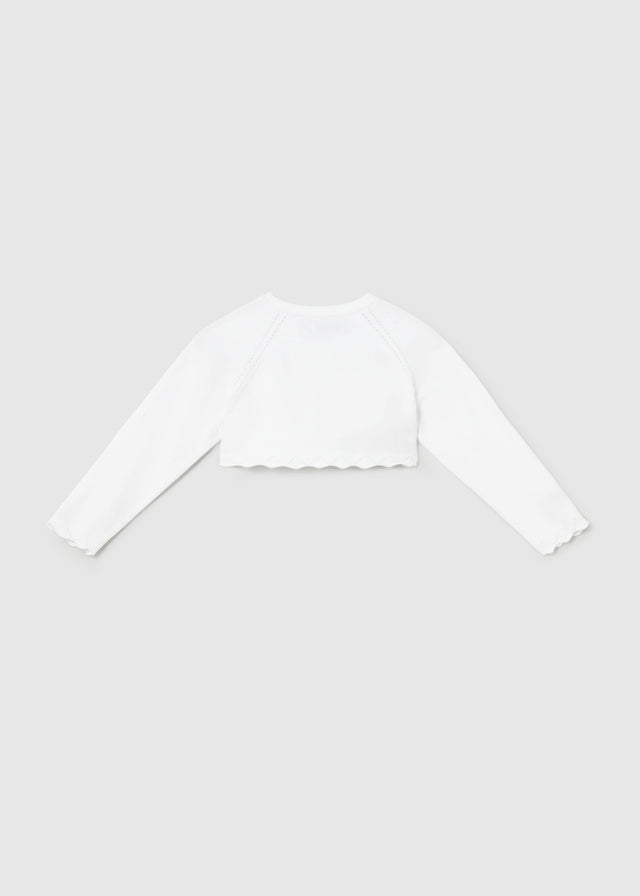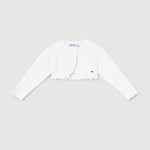 Capo ECOFRIENDS enthält Bio-Baumwolle. Langarm-Cardigan für Babys. Ein-Knopf-Verschluss. Weicher Trikotstoff. Dekorative Elemente: perforierte Details.