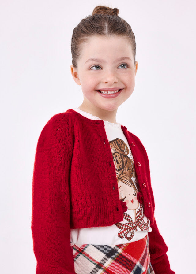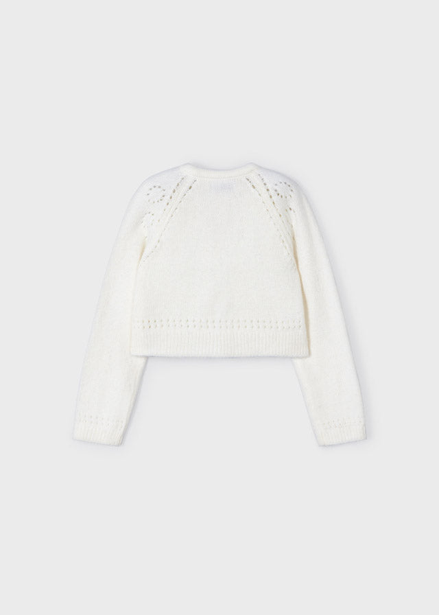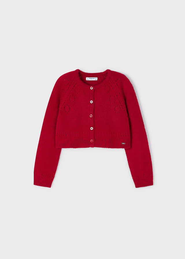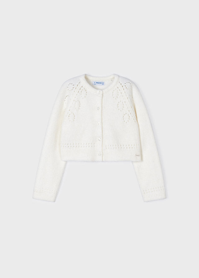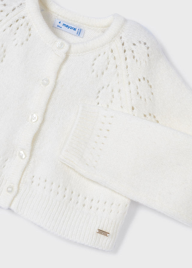 Perforierter Trikot-Cardigan aus Wollmischung.