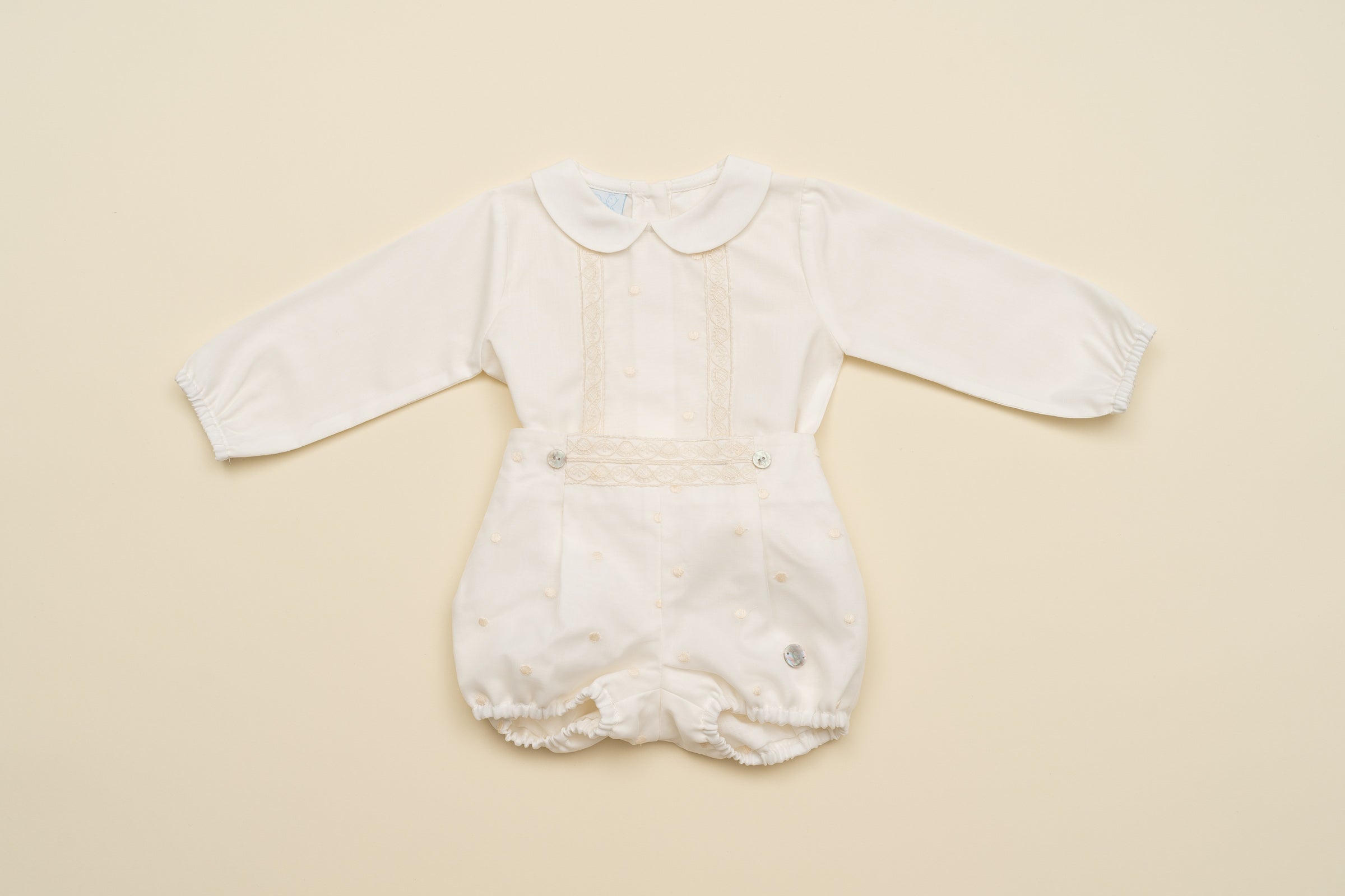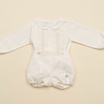 -Das Hemd wird mit Innenknöpfen an der Hose befestigt, um einen Strampler-Effekt zu erzielen.