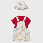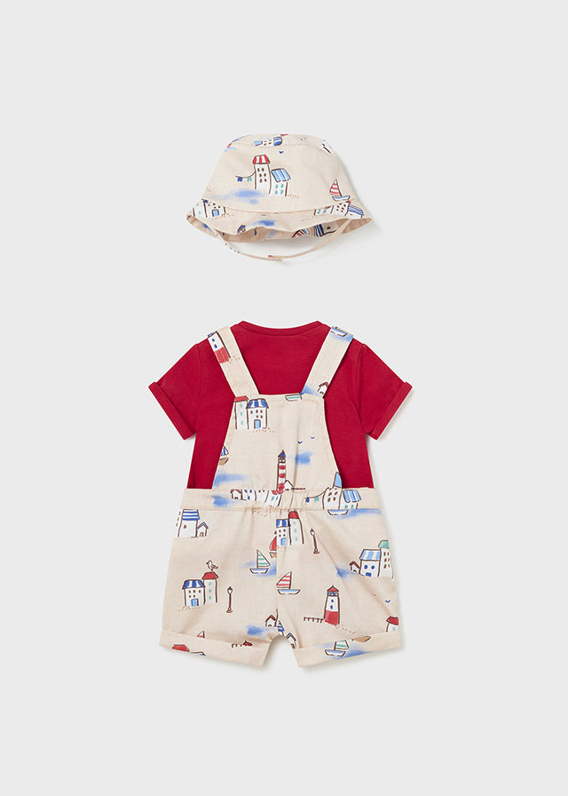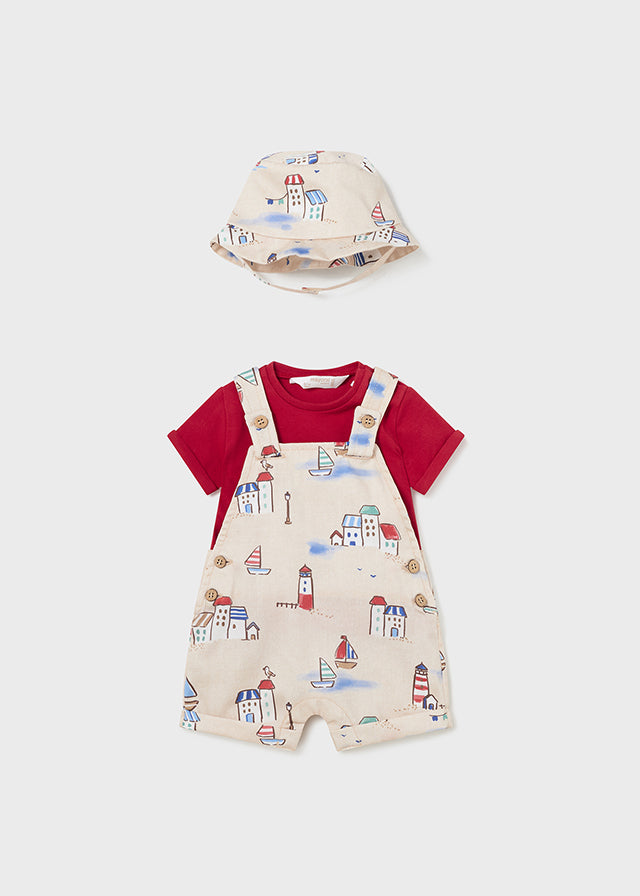 Originale pantalone salopette per neonato. Chiusura con bottoni a pressione nell'interno cosce per agevolare la vestibilità. Chiusura con bottone a pressione per agevolare la vestibilità. Design stampato.