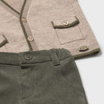 Pantalone per neonato. Vita con elastico e chiusura con bottone. Orlo elasticizzato per una migliore vestibilità. Finte tasche anteriori e posteriori decorative.