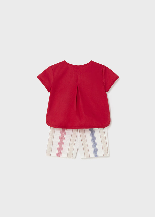 Completo per neonato costituito da camicia e bermuda abbinati.