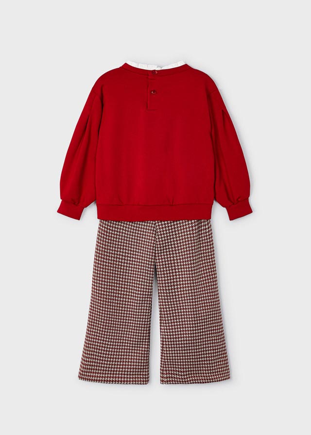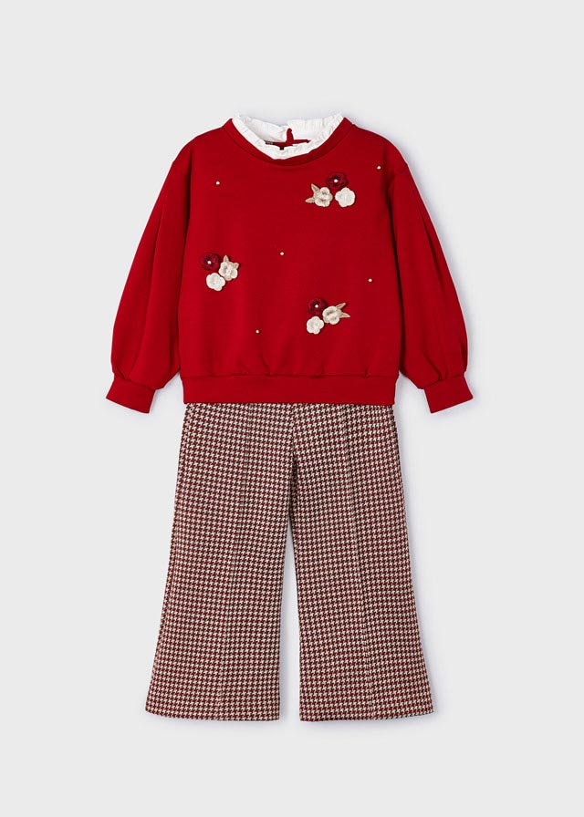 Anzug mit Hose mit Hahnentrittmuster und Sweatshirt mit Stickerei.