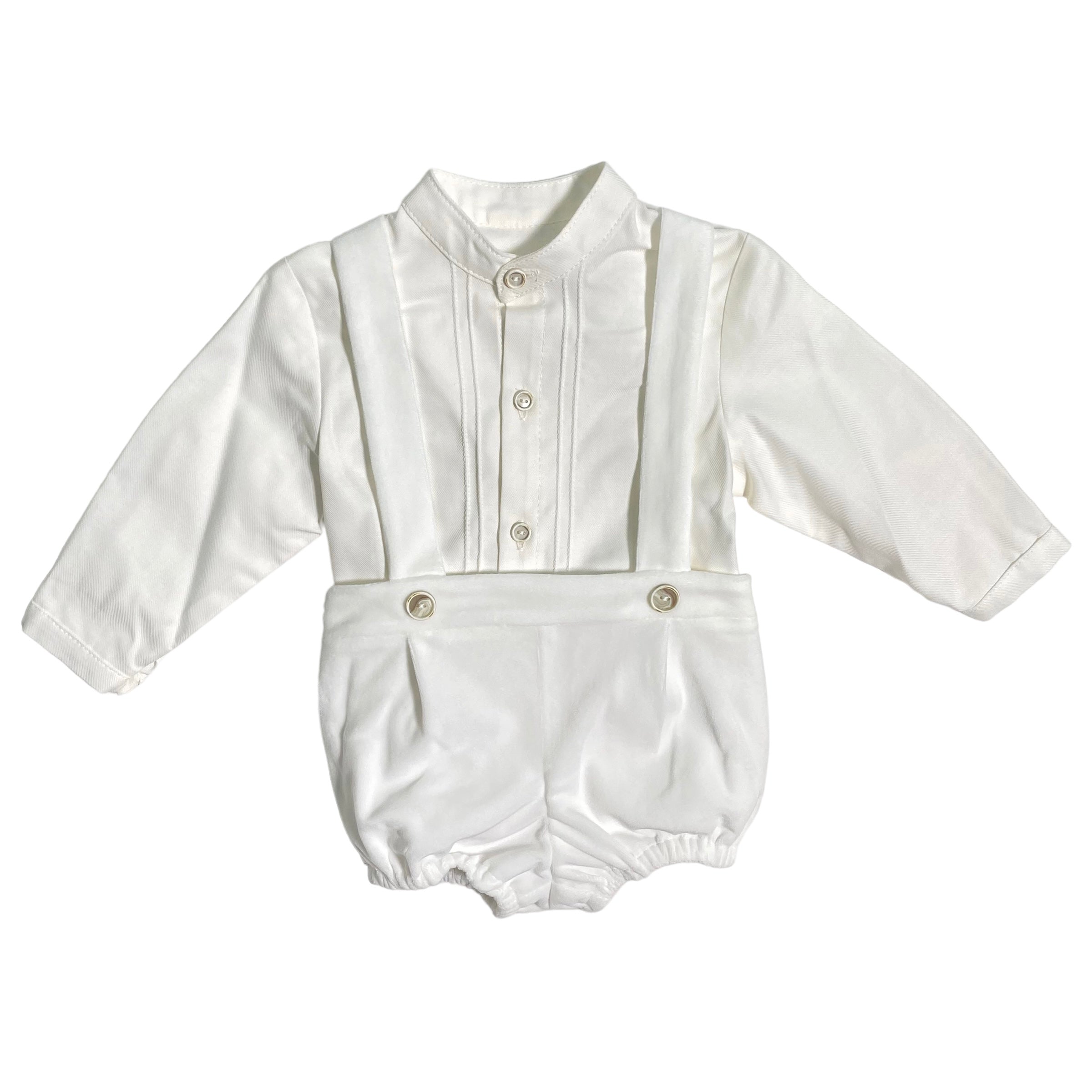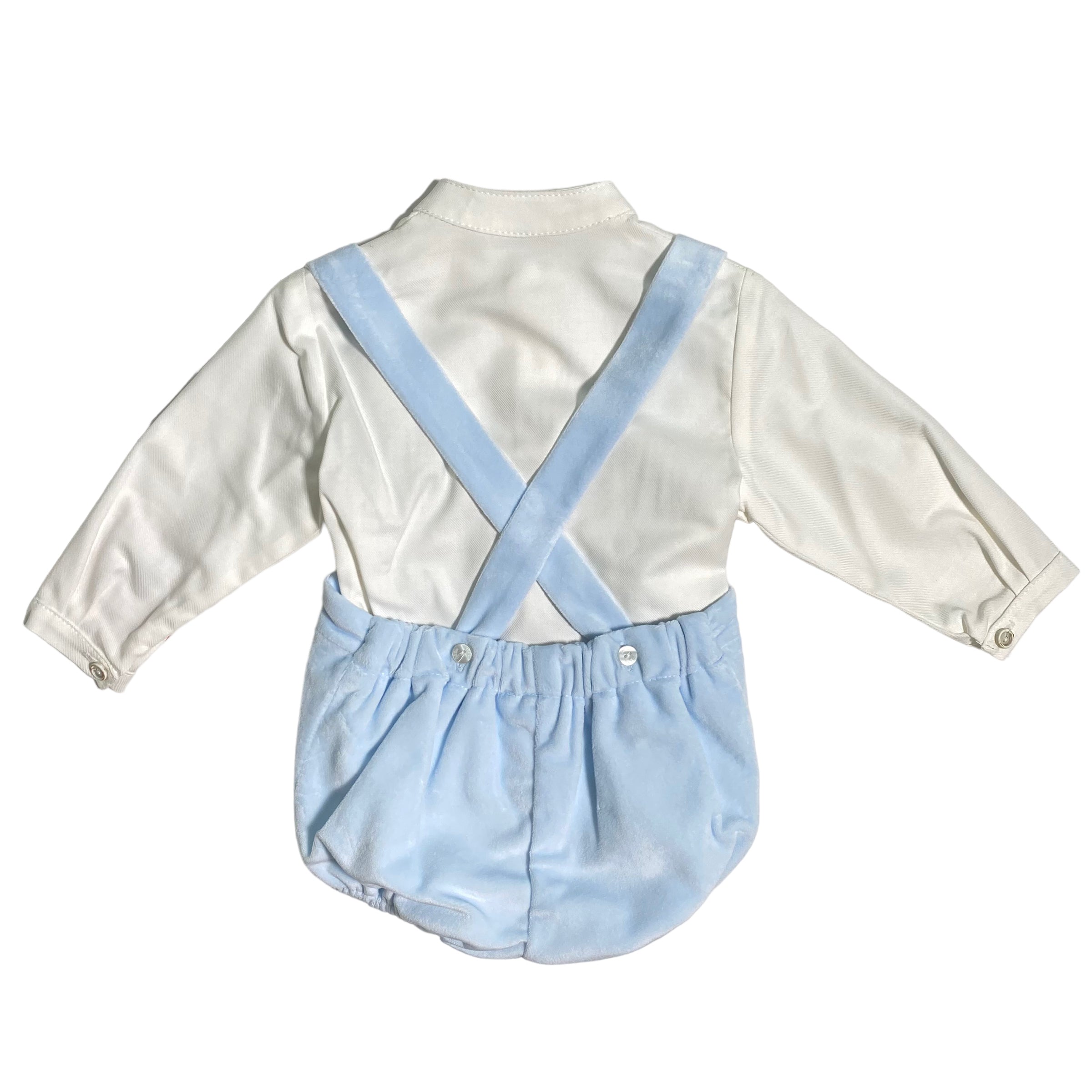 DEL SUR 1879 Neugeborenenanzug mit Samtoverall und Hemd
