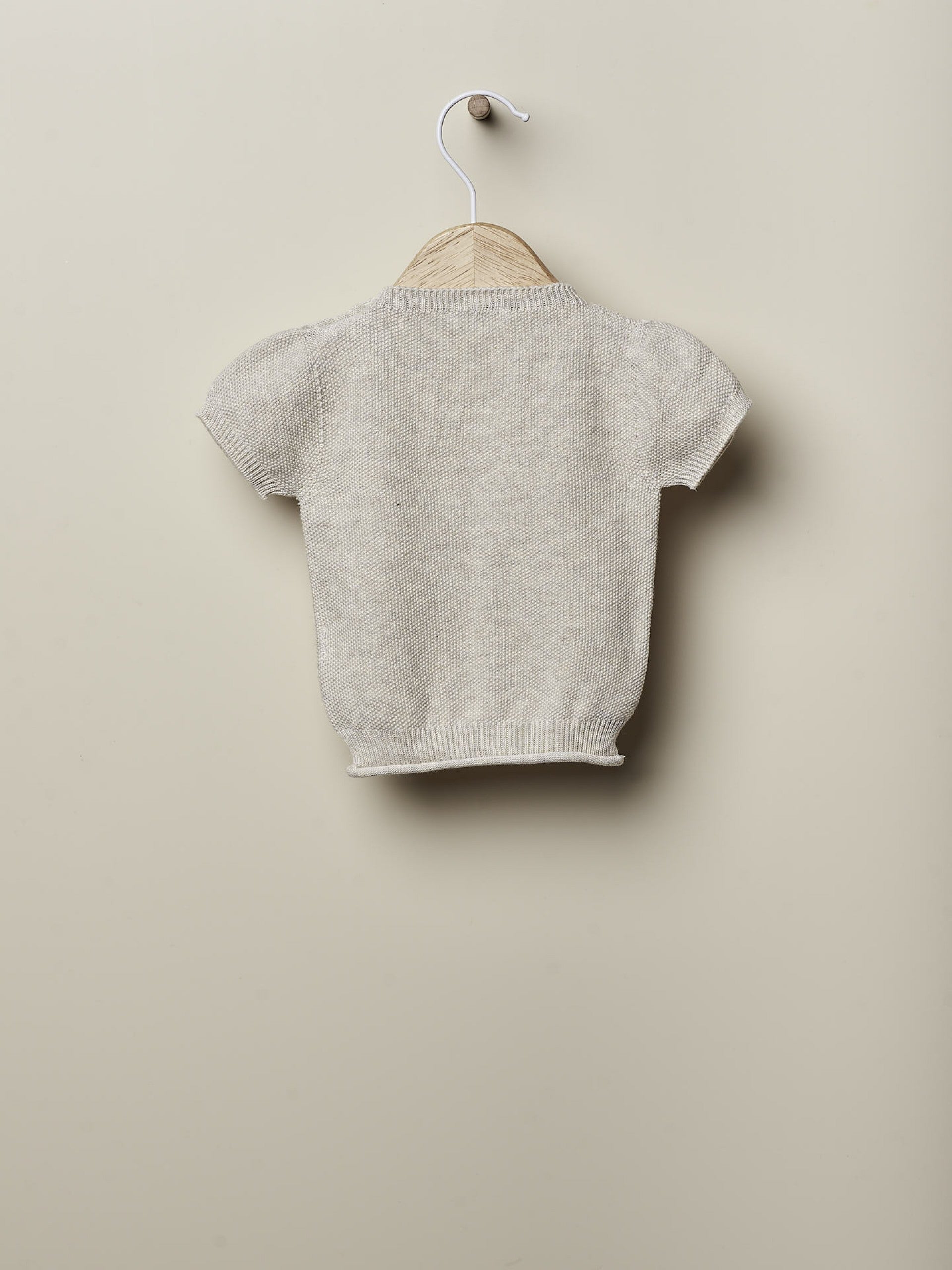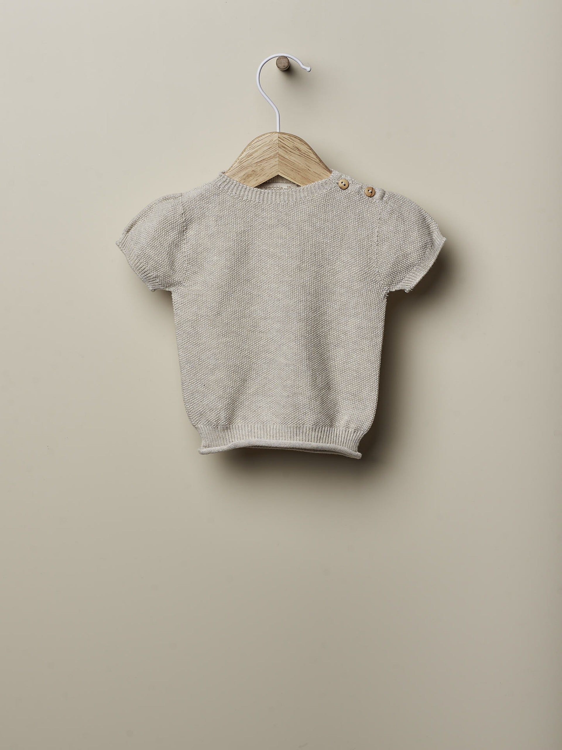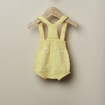 Questo completo 2 pezzi WEDOBLE è perfetto per neonato/a. La culotte gialla con bretelle in filo, lavorata con poise in rilievo e bottoni in legno sulla fascia elastica, assicura un look unisex chic. Il maglioncino girocollo mezza manica in filo a grana di riso, con dettagli di bottoni in legno sulle spalle, un look elegante e comodo. Ideale per il tuo piccolo/a fashionista.