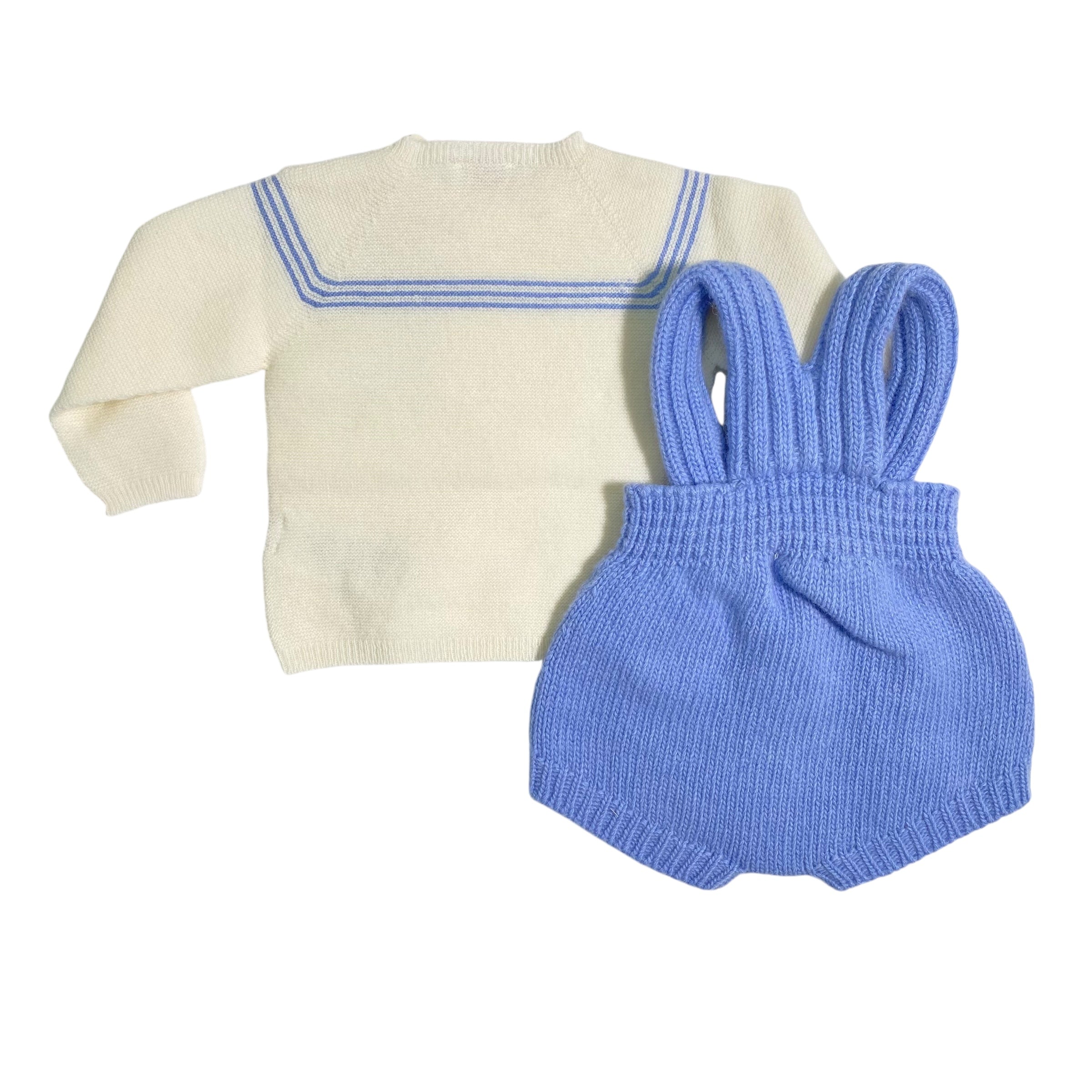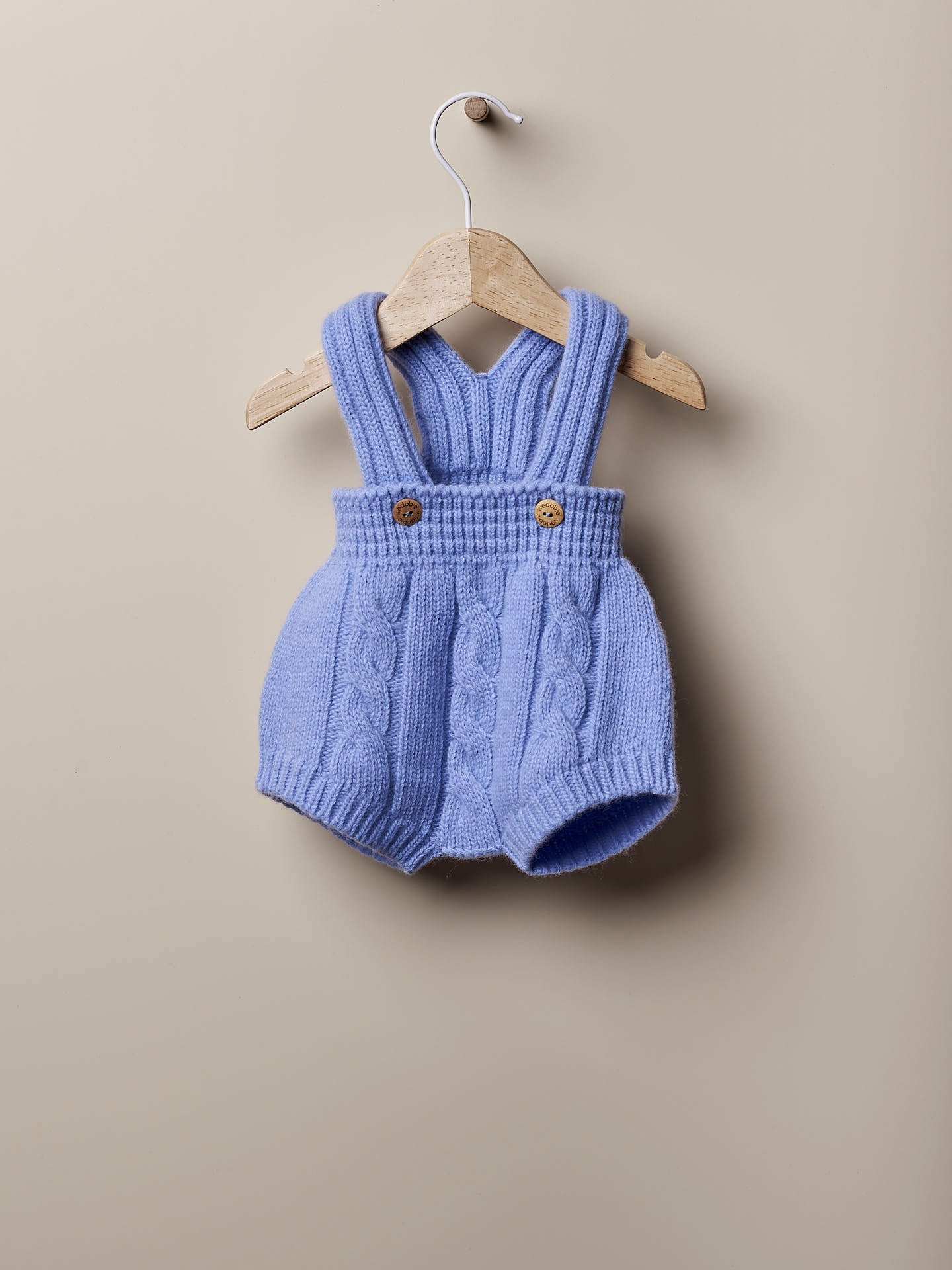 Pagliaccetto con spalline lavorato a maglia in morbida lana merino extra fine, ottimo per neonati. LOVE IN WINTER DAYS shortie si chiude davanti con le spalline con bottoni in legno. Realizzato con la tecnologia Wholegarment, questo capo è privo di cuciture per il massimo comfort del tuo bambino.