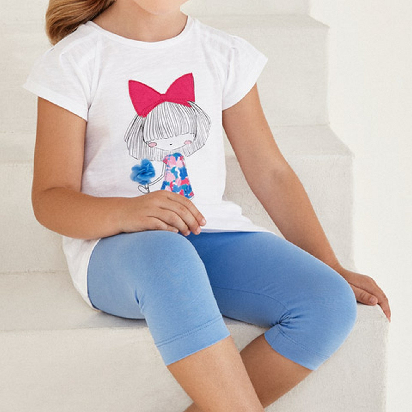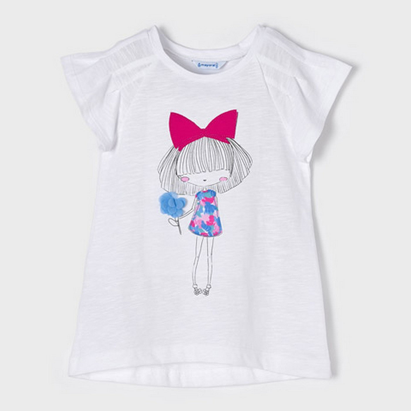 -white t-shirt with print on the front.