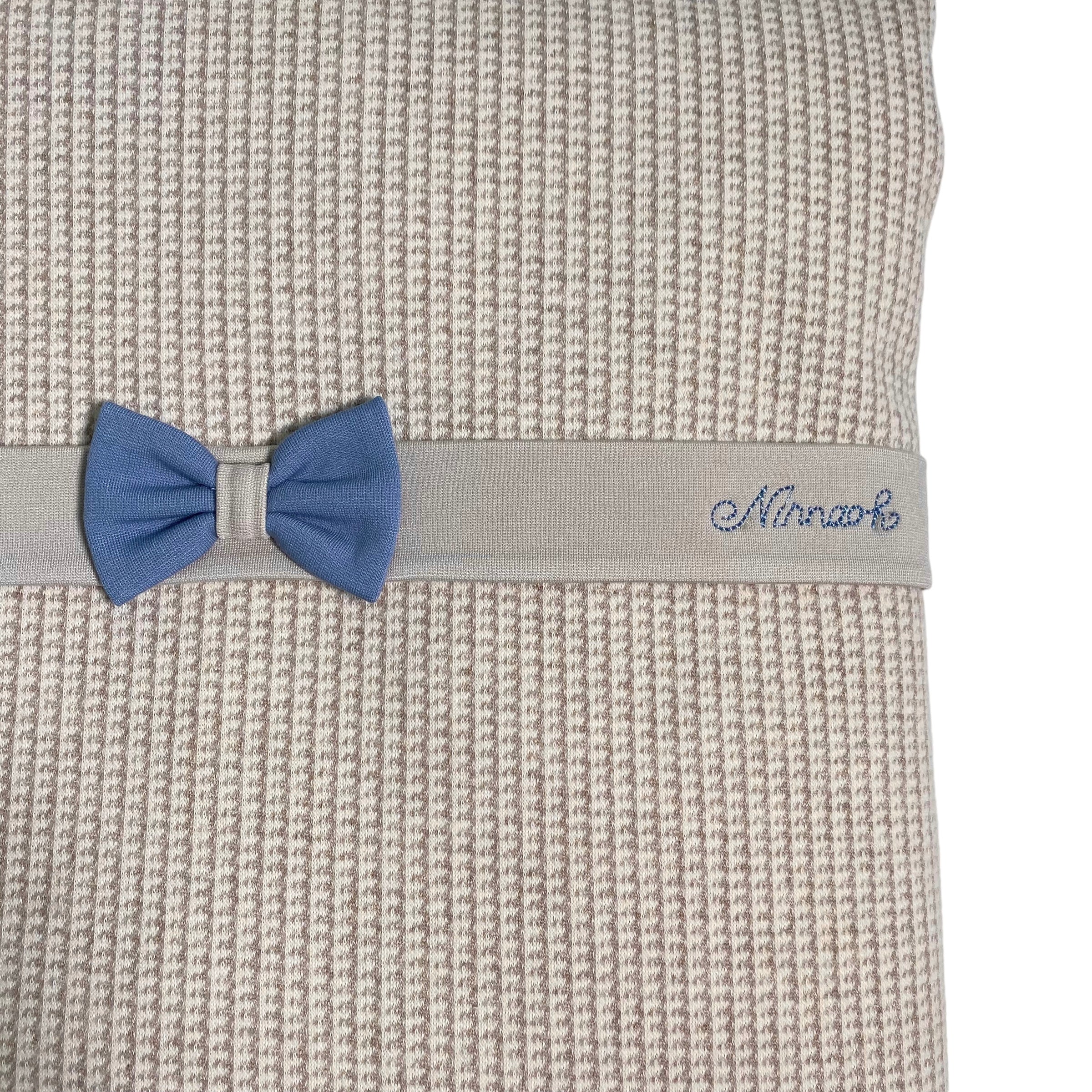 Abnehmbare, gepolsterte Decke aus warmer Baumwolle, beiges Hahnentrittmuster, mit Bauchband mit Schleife.