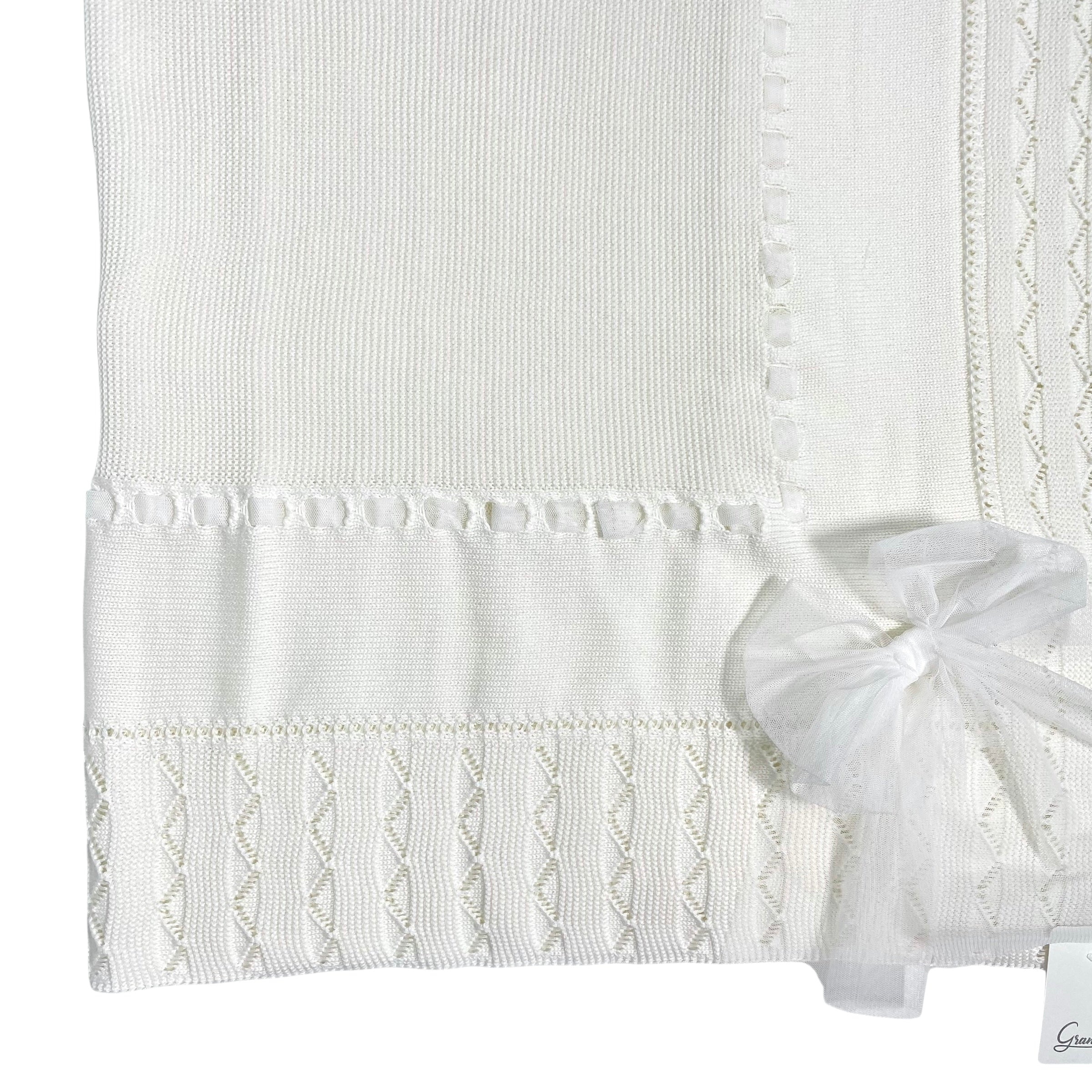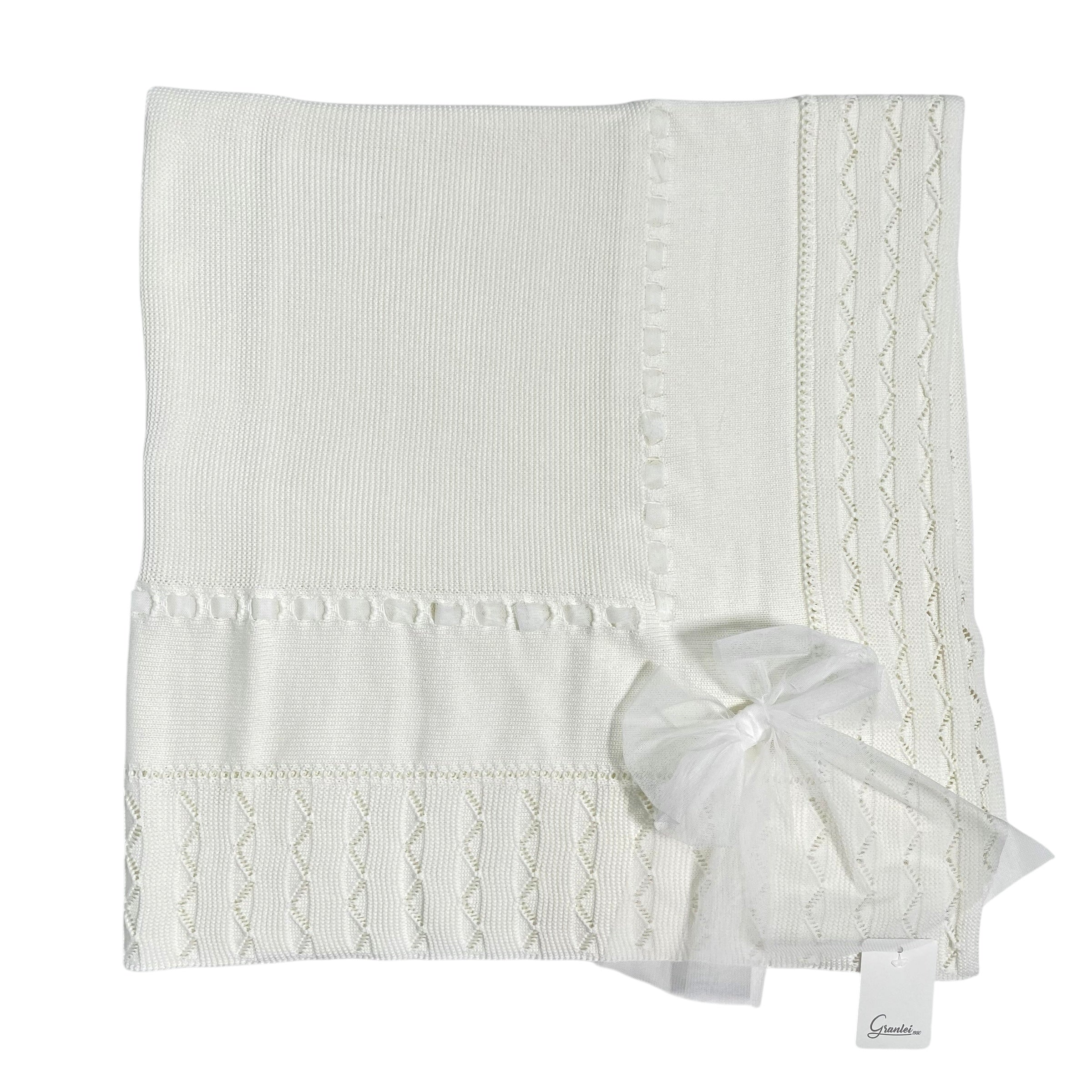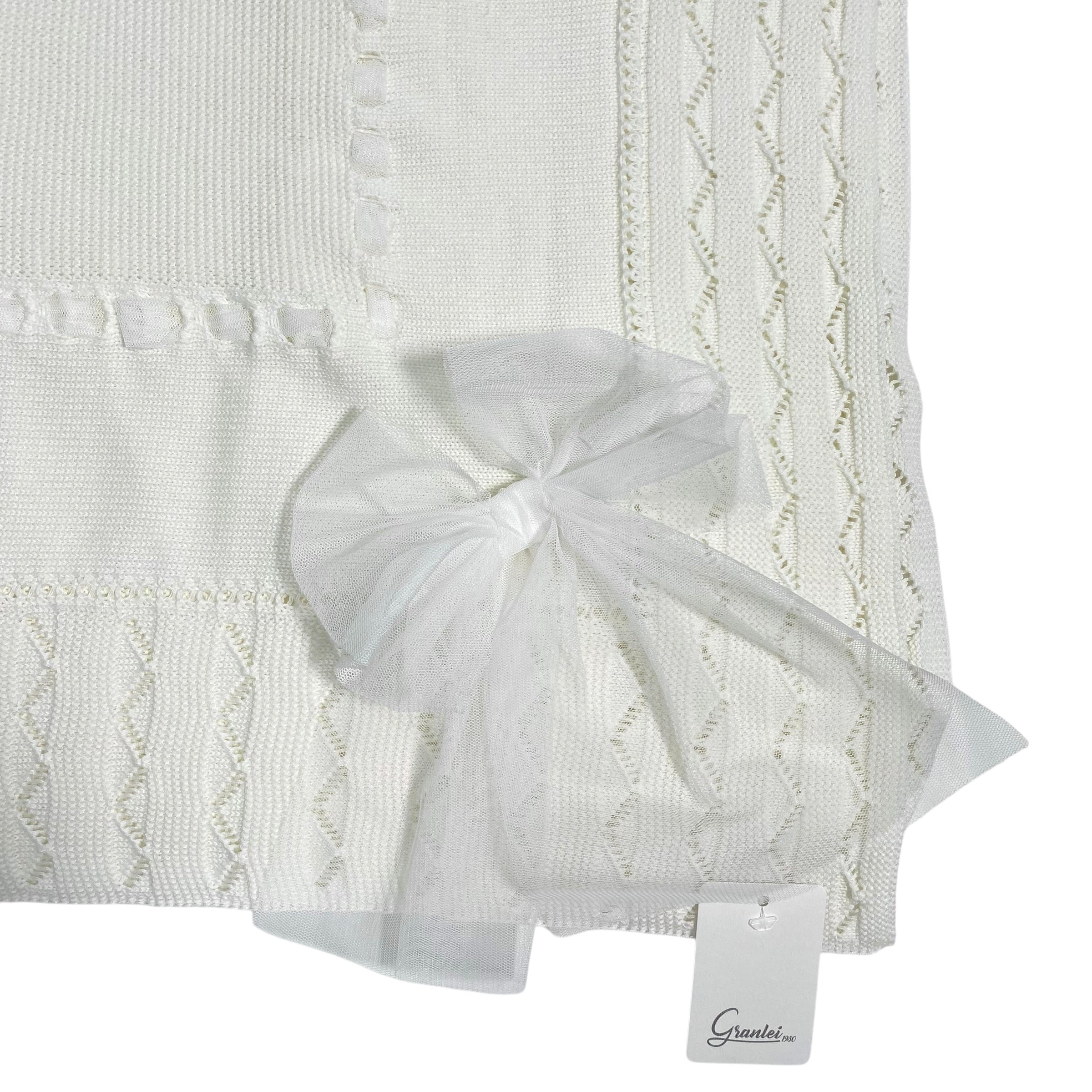 Coperta In Filo Di Cotone Con Traforature E Fiocco In Tulle Neonata GRANLEI 137