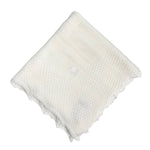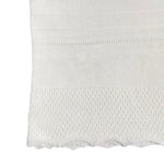 Coperta in filo di cotone, in tinta unita panna, con ampio bordo lavorato e con traforature.