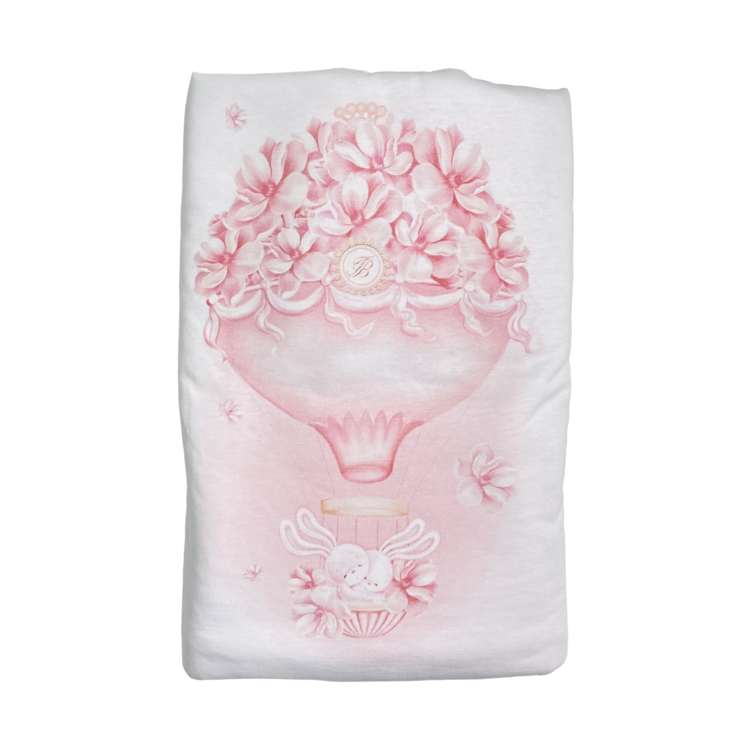 Questa coperta in jersey di cotone imbottita per neonati FIRST BABY BALOON è perfetta per il corredino del tuo bambino. Con la sua stampa di mongolfiera e le dimensioni di 80*90cm, è elegante, tenera e chic. Grazie alla sua imbottitura leggera, il tuo bebè sarà comodamente avvolto e al caldo. Una scelta di qualità per i neonati più esigenti.