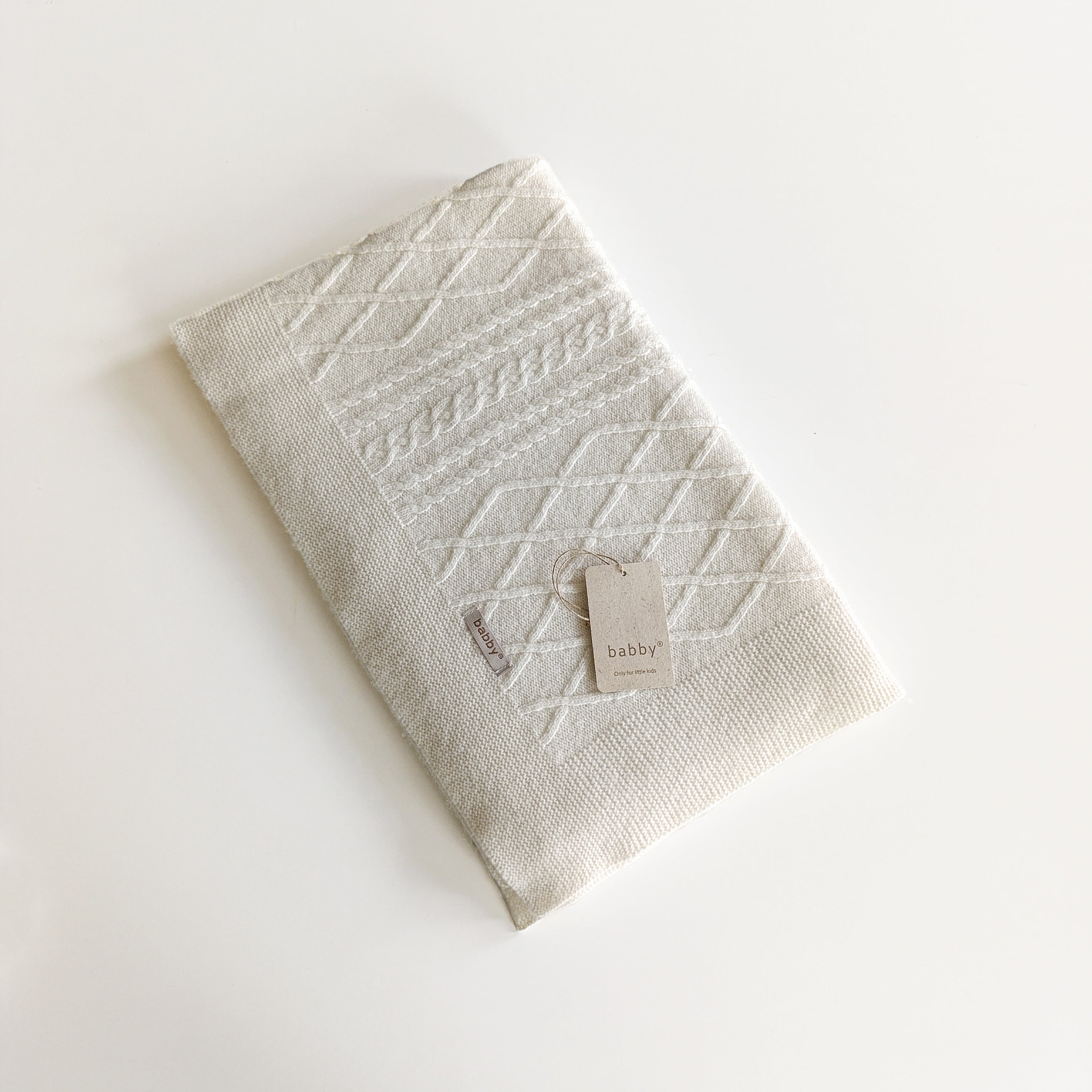 Questa coperta in misto cashmere è pensata per il corredino dei primi giorni del neonato, garantendo morbidezza e calore delicato sulla pelle sensibile. La trama a rombi aggiunge un tocco elegante e raffinato, ideale per accompagnare i momenti di riposo con stile e comfort superiore. Un accessorio prezioso per il benessere del bambino fin dalla nascita.