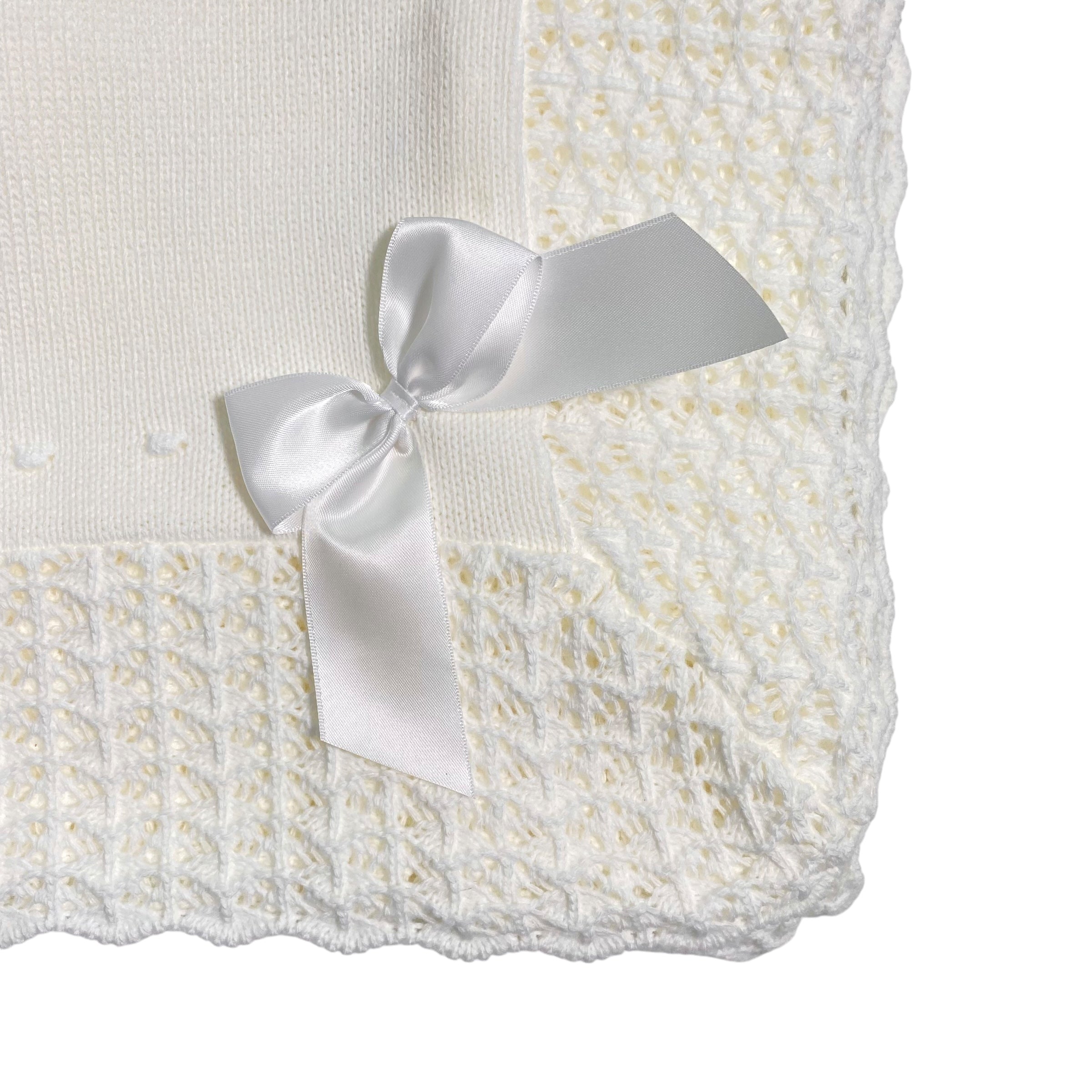Decke aus hypoallergenem Acrylstoff mit Perforationen und Satinschleife.