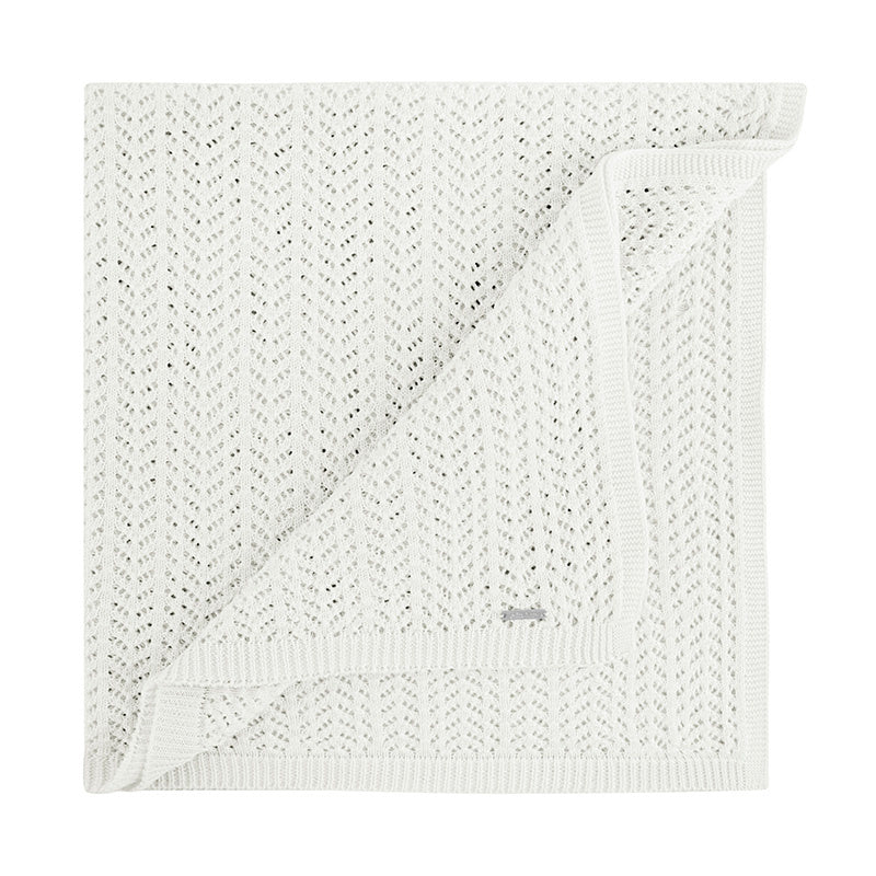 Durchbrochener Fischgrätenschal für Neugeborene. 80x80 cm.