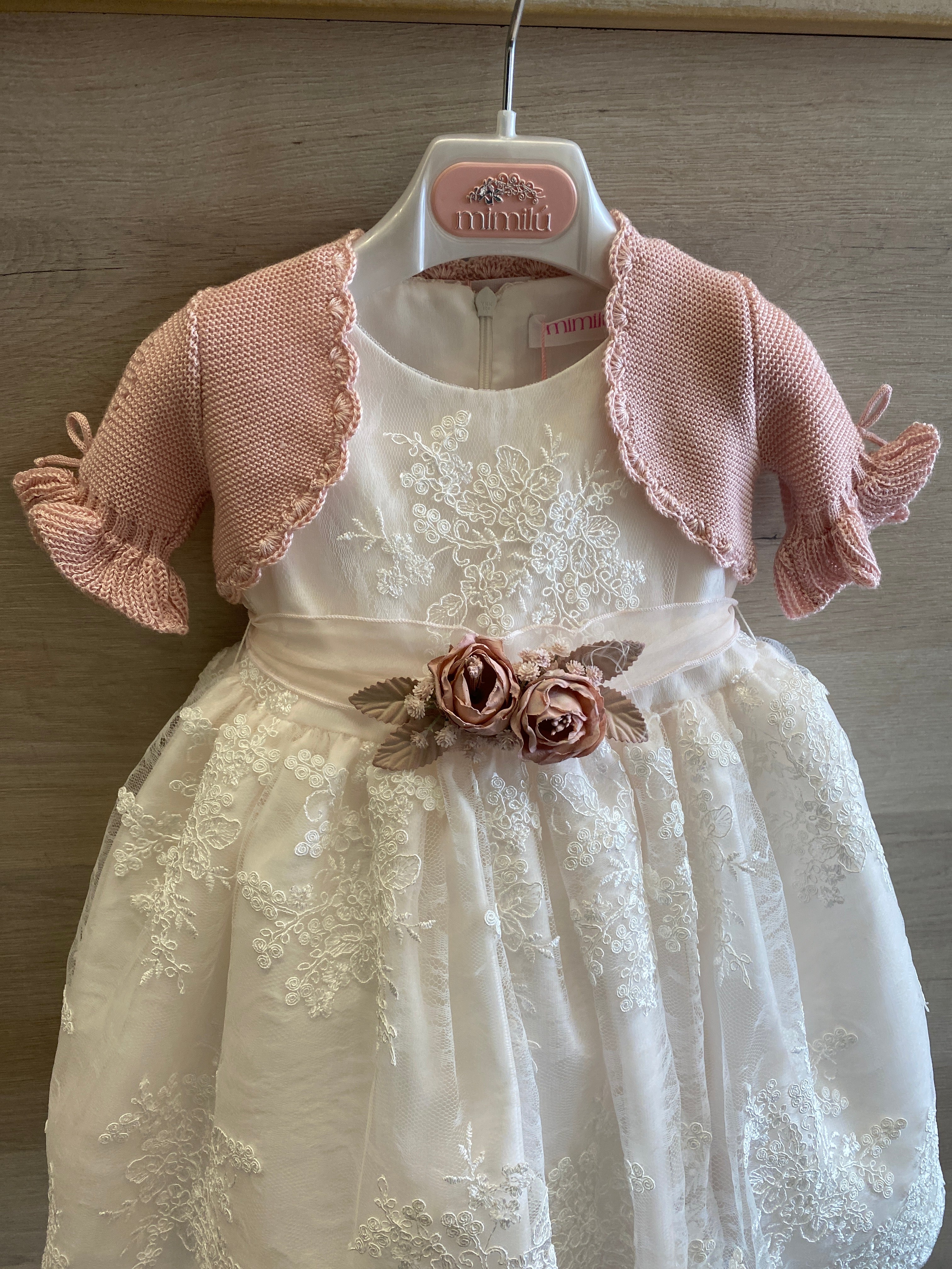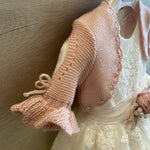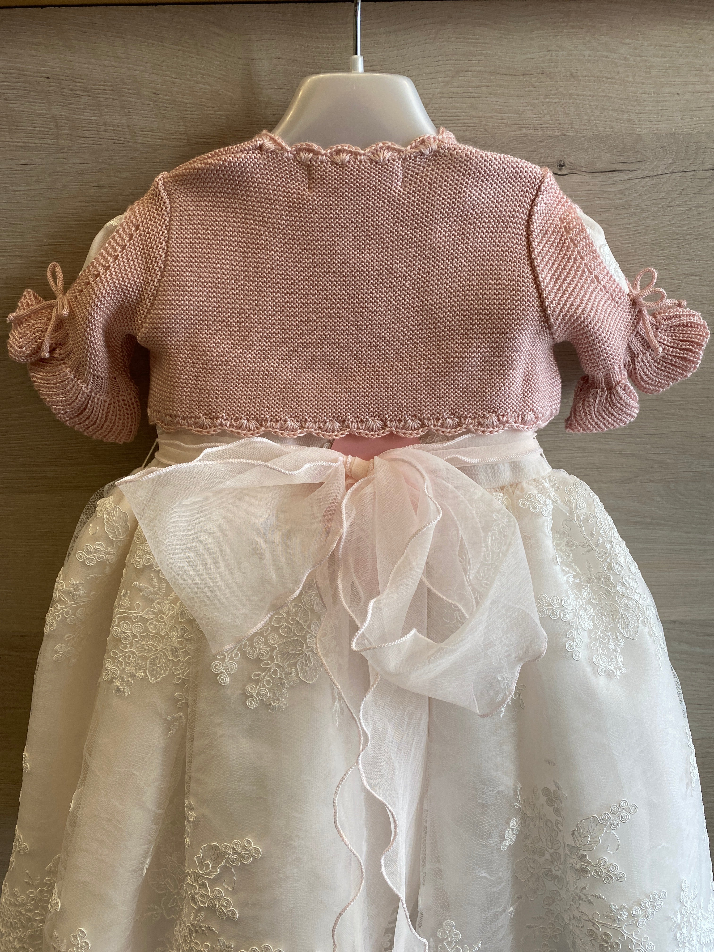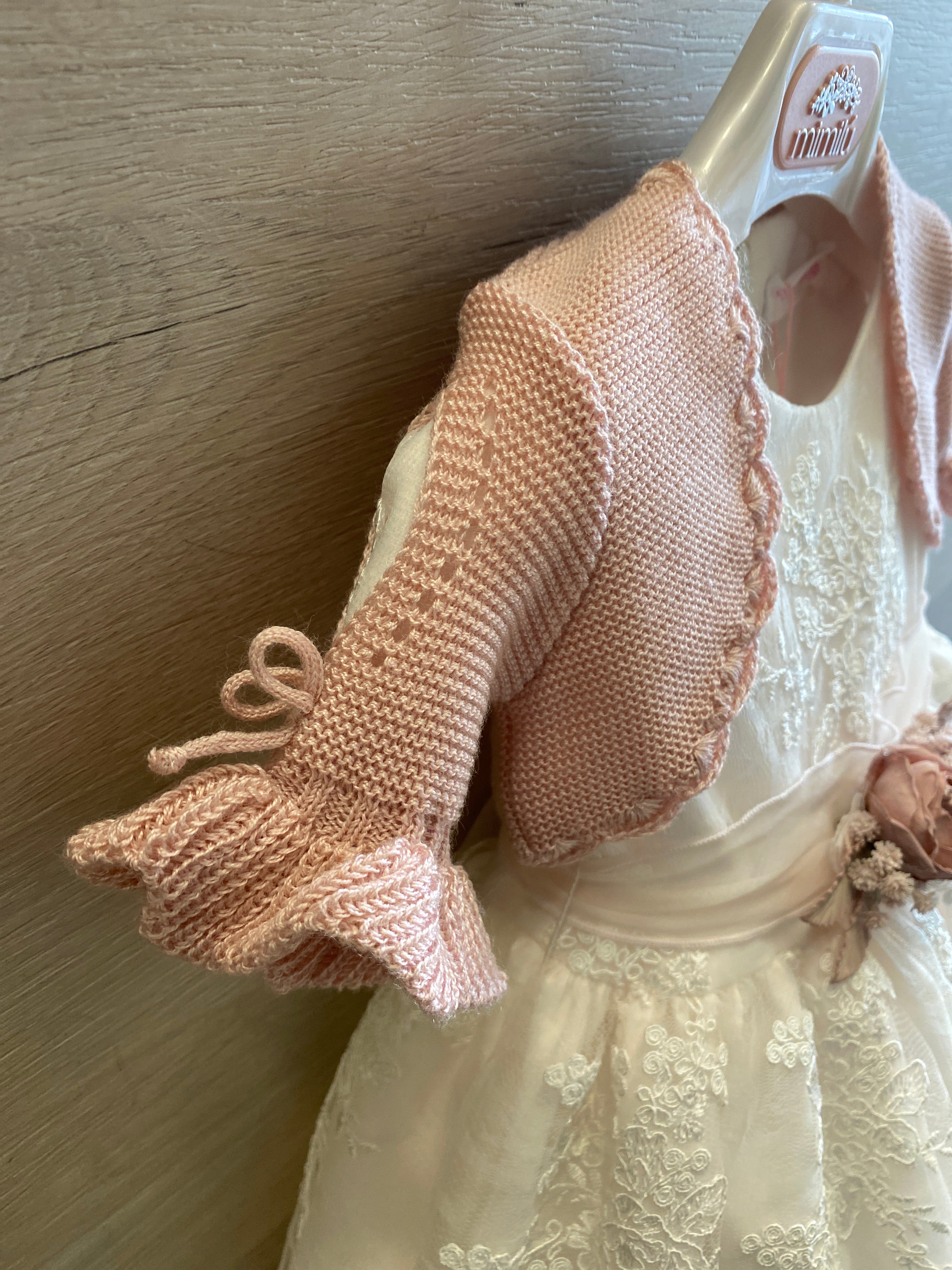 Questo coprispalle in morbido acrilico è perfetto per le neonate. Con maniche 3/4 ed eleganti aperture sulla manica, completa l'outfit con stile.