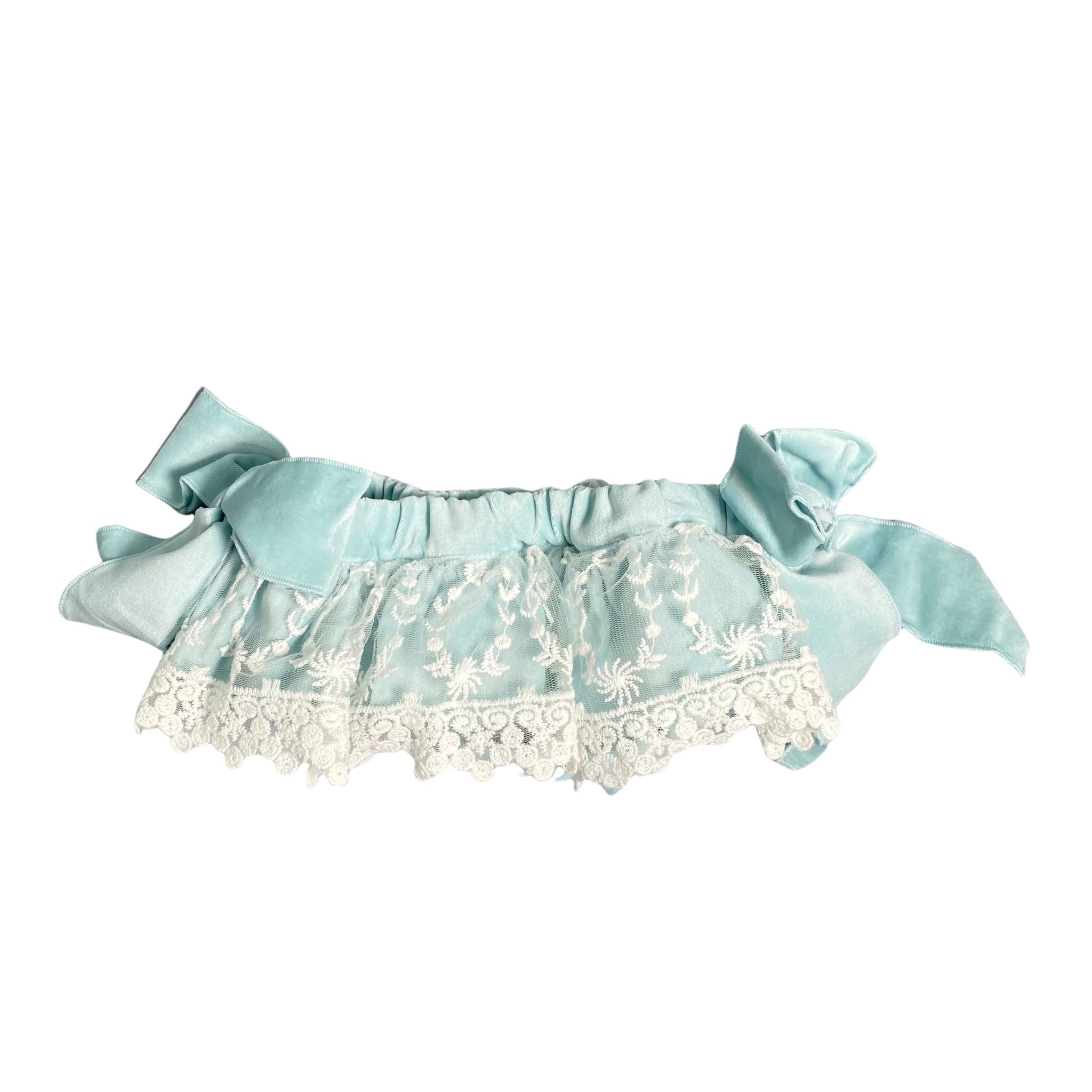 Cullotte in Velluto Turchese con Pizzo Bambina Phi Clothing 21504 - PHY CLOTHING - LuxuryKids