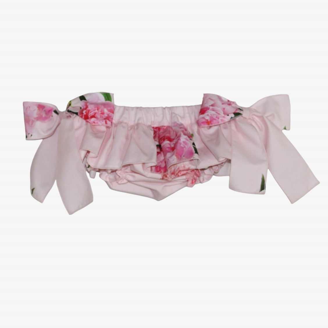 Culotte in cotone stampata con balze e fiocchi laterali per neonate. Realizzate in morbido cotone stampato, queste culotte sono adornate con balze e fiocchi laterali per un tocco di dolcezza. Ideali per un comfort e uno stile impeccabili.