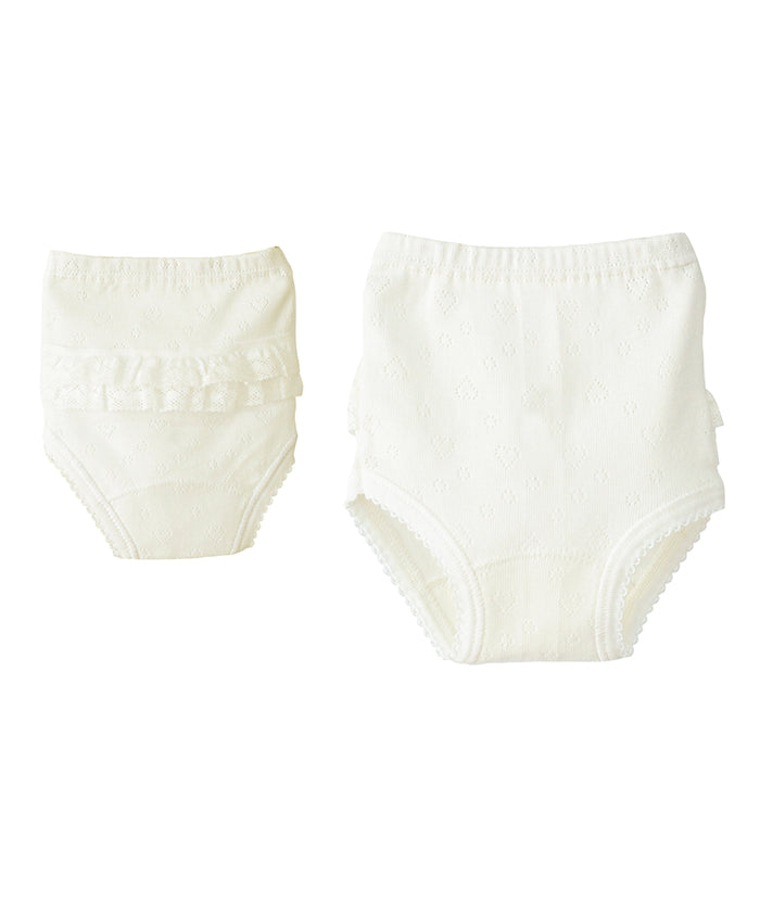 Baumwoll-Culotte mit perforierten Herzen und Spitzenrüschen auf der Rückseite