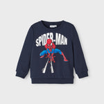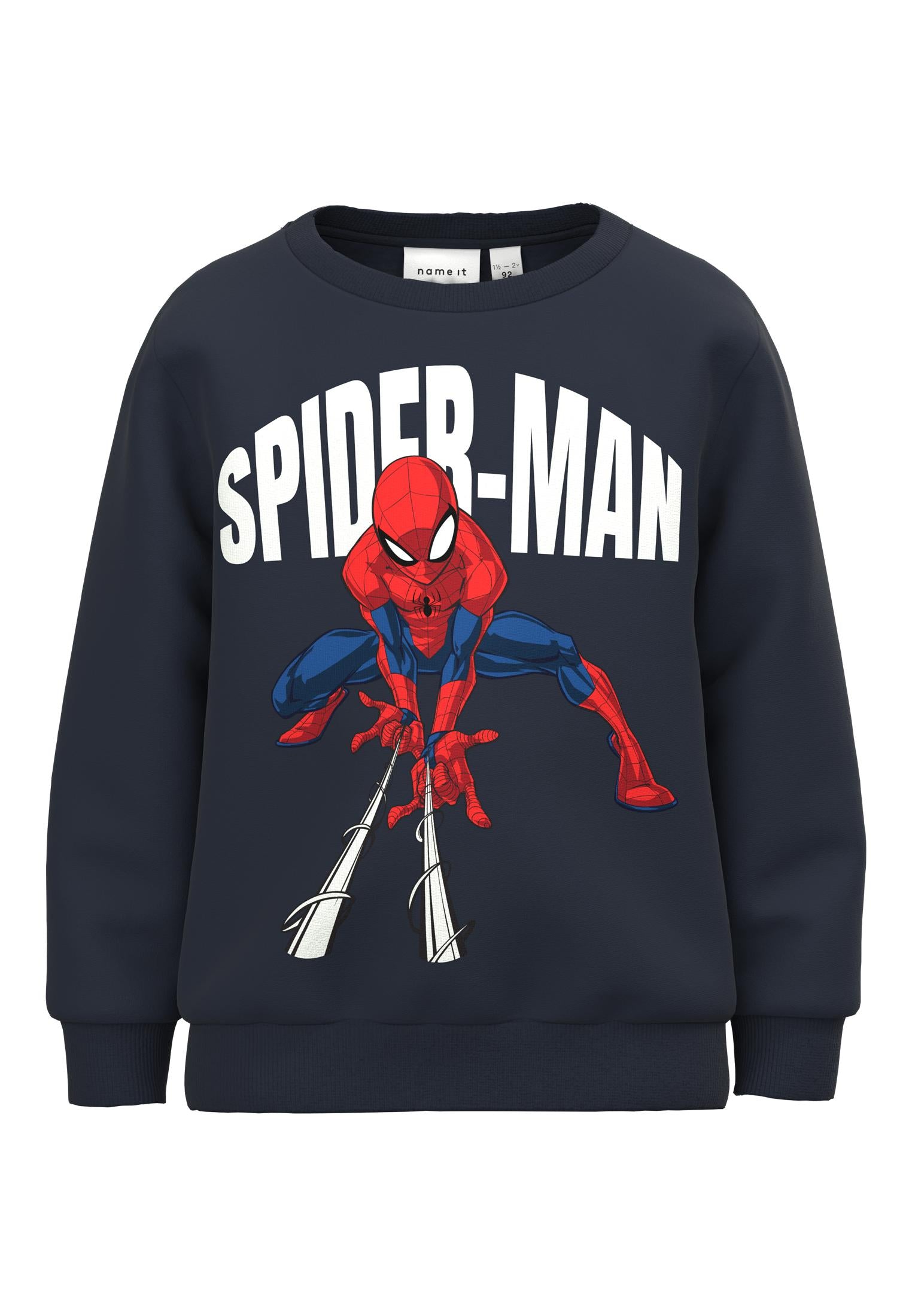Sweatshirt aus warmer Fleece-Baumwolle, einfarbig blau, mit Spiderman-Aufdruck.