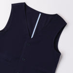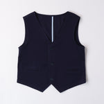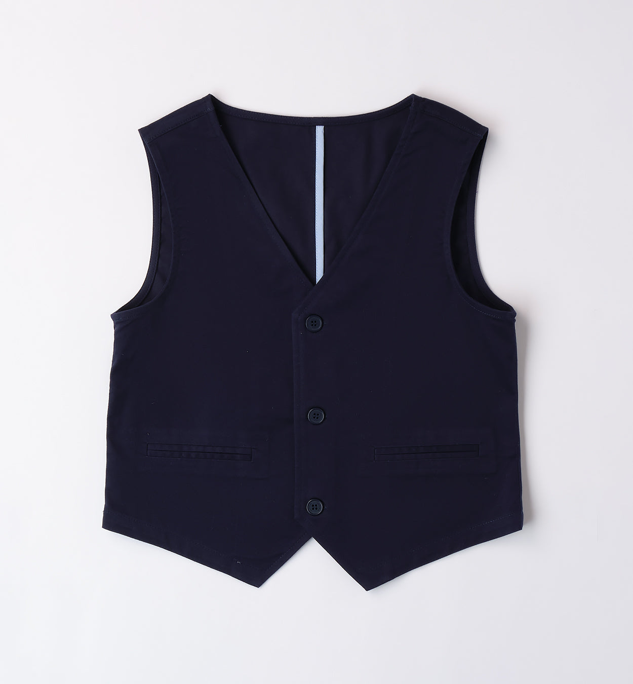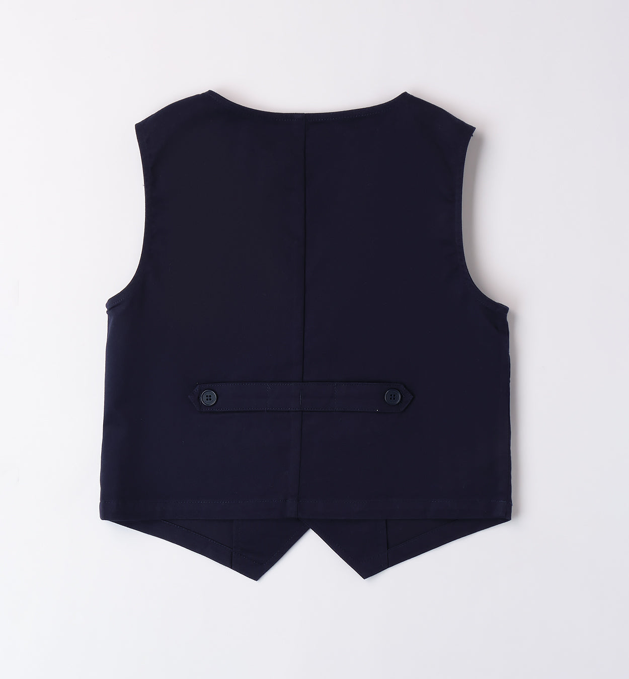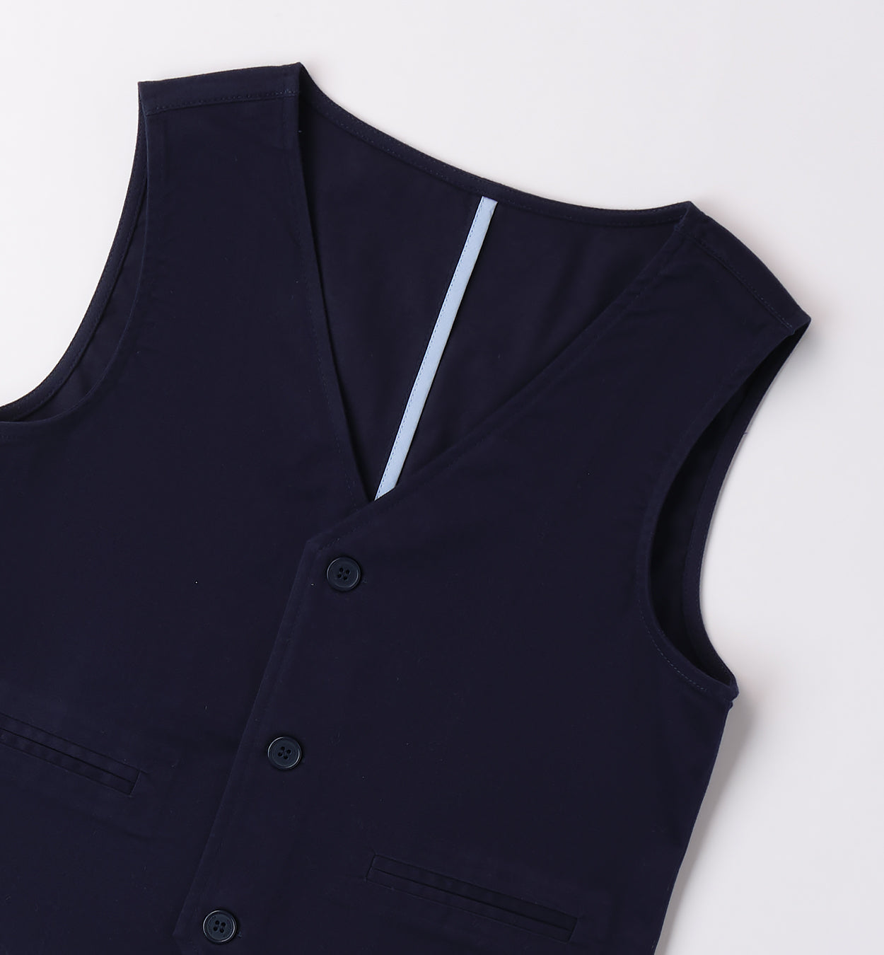 Il gilet Sarabanda per bambino è realizzato in twill stretch di cotone. Con l'apertura frontale a bottoni e le tasche a filetto, è pratico e confortevole. Inoltre, la fantasia tinta unita lo rende versatile e adatto ad ogni occasione. Garantisce il massimo comfort per il tuo piccolo.